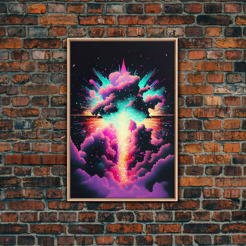 Color Pop Explosion, Vintage style art, framed canvas print, vaporwave aesthetic cloud art