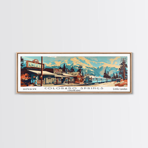 Colorado Springs Colorado Panoramic Painting, Mid Century Modern Framed Canvas Print, Retro Pop Art Travel Poster, Wall Decor, Gift Idea, Home Decor