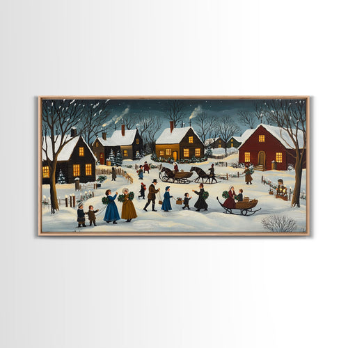 Colonial Village Christmas Scene Framed Canvas Print - Charming Christmas Wall Art and Vintage Holiday Decor 2024 Christmas Gift