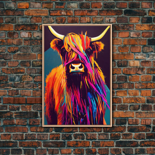 Colorful farmhouse art, Highland cow, Scotland cattle, framed canvas print