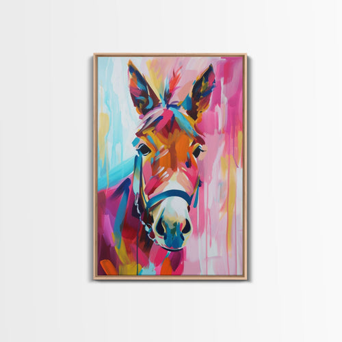 Colorful Donkey Portrait Art - Framed Canvas Print, Southwestern Decor, Vibrant Living Room Wall Art, Modern Animal Portrait