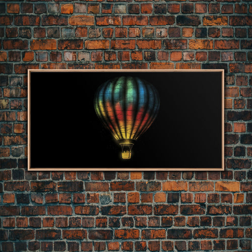 Colorful Hot Air Balloon Wall Decor, Metallic Wall Art, Vibrant Print, Panoramic Wall Decor, Canvas Print, Wall Art, Framed Canvas Art