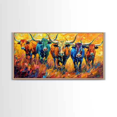 Colorful Herd of Cattle, Ideal for Living Room Art, Framed Canvas Print, Bedroom Decor, Home Decoration, Rustic Farmhouse Art
