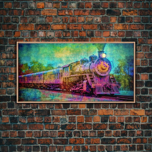 Colorful Steam Train Wall Decor, Locomotive Wall Decor, Train Wall Art, Panoramic Wall Decor, Canvas Print, Wall Art, Framed Canvas Art