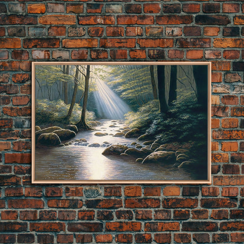 Colorful Watercolor Art, Framed Canvas Print, unique wall art, framed wall art, Landscape watercolor, Beams of Sunlight piercing the canopy