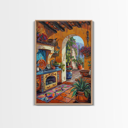 Colorful Southwestern Kitchen Framed Canvas Print Mexican Tile Art Decor Vibrant Wall Art Best Gift Idea Above Sofa Home Seasonal Decor