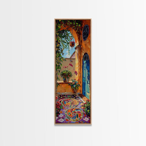 Colorful Tribal Art Painting Framed on Canvas, Spanish Style Canvas Painting, Vertical Framed Art for Living Room, Modern Canvas Art