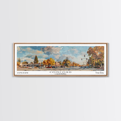 Concord California Panoramic Watercolor Painting Framed Canvas Print, Travel Poster Art, Urban Landscape, Bedroom Wall Art, Living Room Decoration, Office Wall Art, California-Themed Gift
