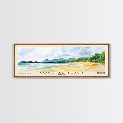 Conchal Beach, Costa Rica Panoramic Print, Vacation Gift, Costa Rica Wall Art, Beach Painting, Beach Decor, Large Wall Art, Wood Frame Art