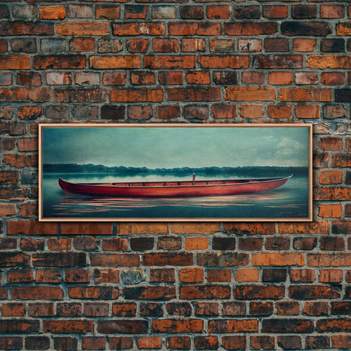 Cool Lakehouse Art, Canoe on the Lake Watercolor, Extra Large Wall Art, Framed Panoramic Canvas Print, Framed Wall Decor