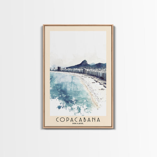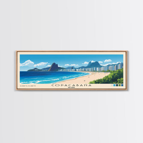 Copacabana, Brazil Panoramic Beach Print, Vacation Gift, Brazil Wall Art, Framed Canvas Print, Framed Beach Painting