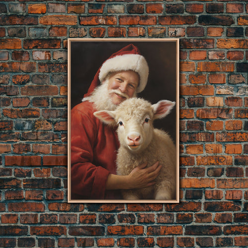 Farmhouse Christmas Decor, Santa And A Little Sheep, Framed Canvas Print, Christmas Wall Art, Xmas Art, Christmas Art Print, Santa Decor
