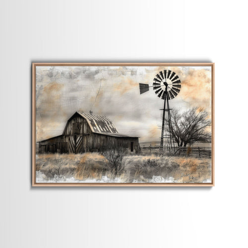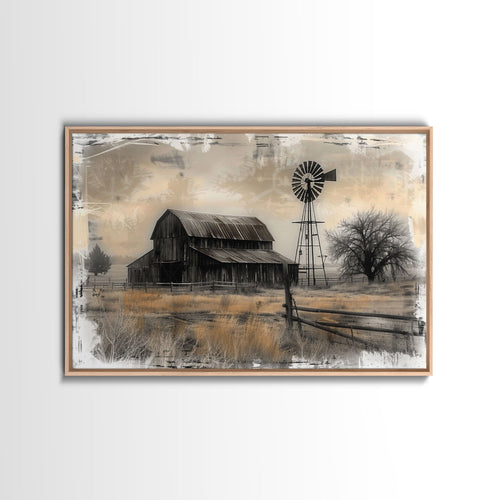 Farmhouse Barn Wall Art Canvas Print Painting Metal Art Vintage Decor Country Art Wood Frame Art Rustic Primitive Art Old Barn Painting