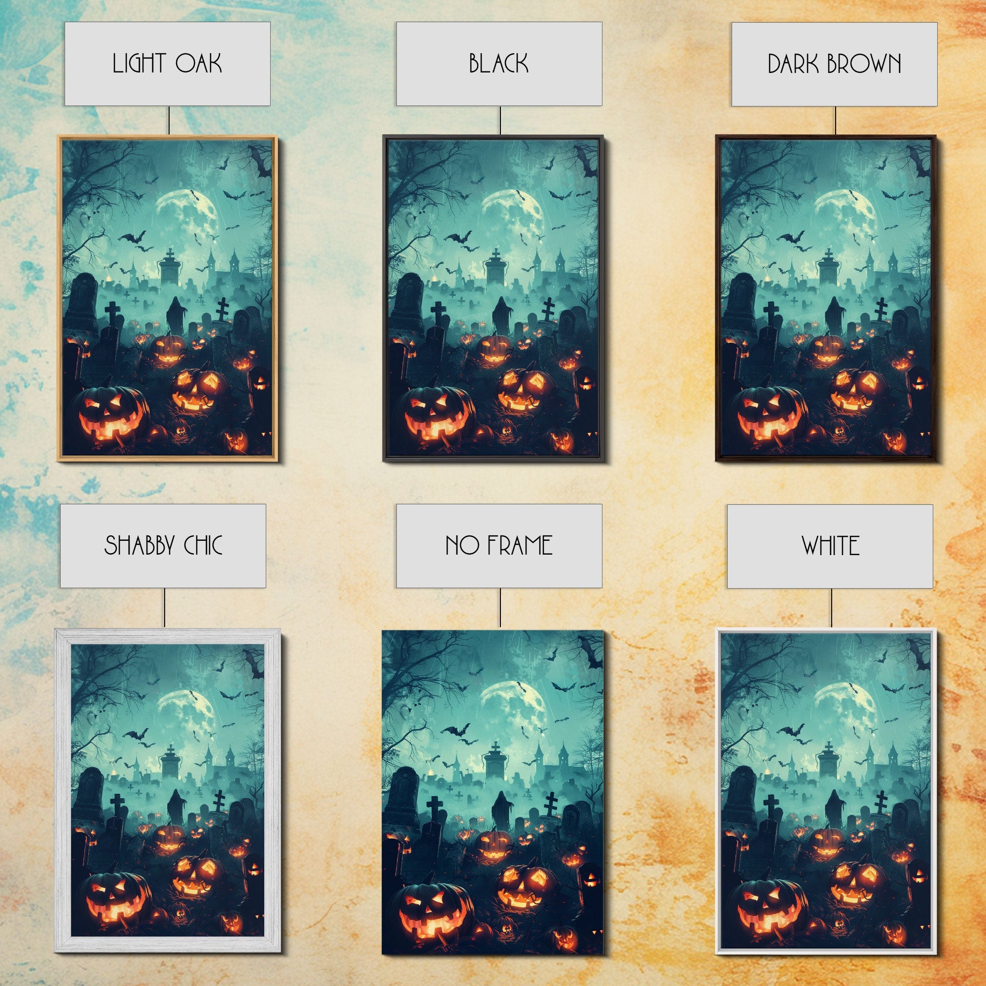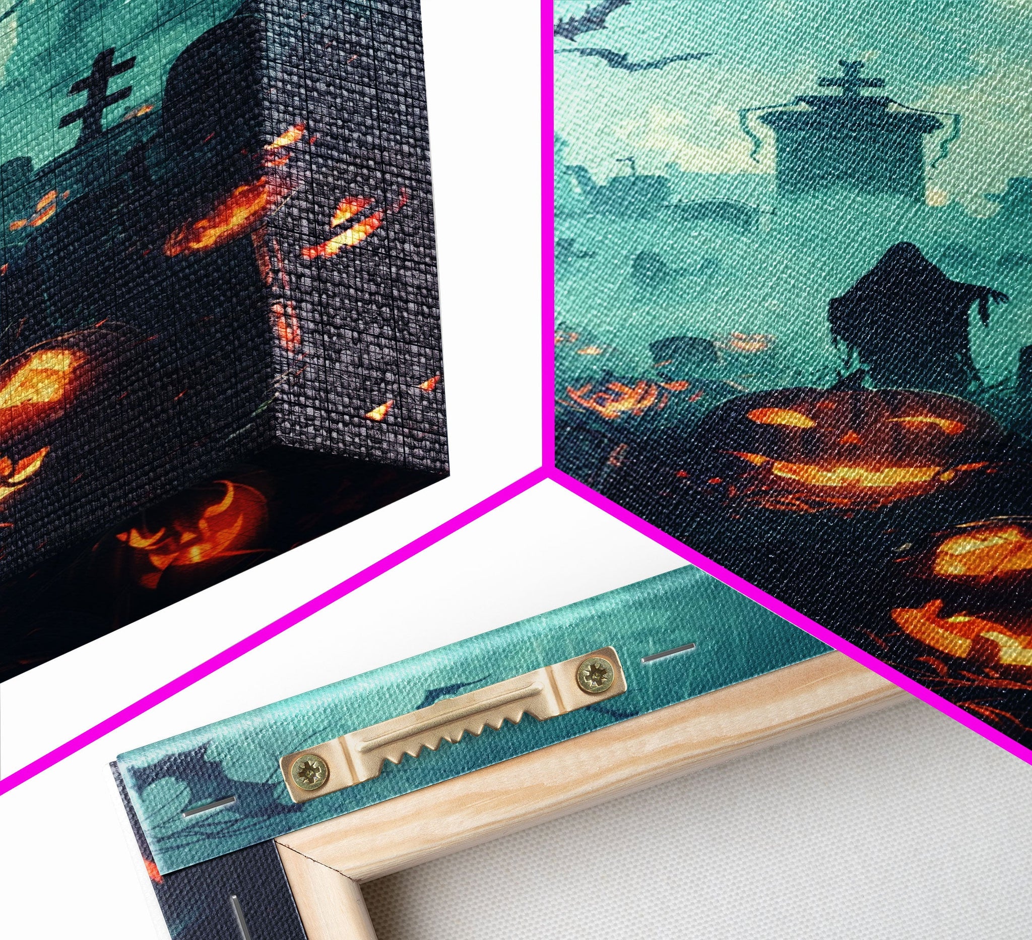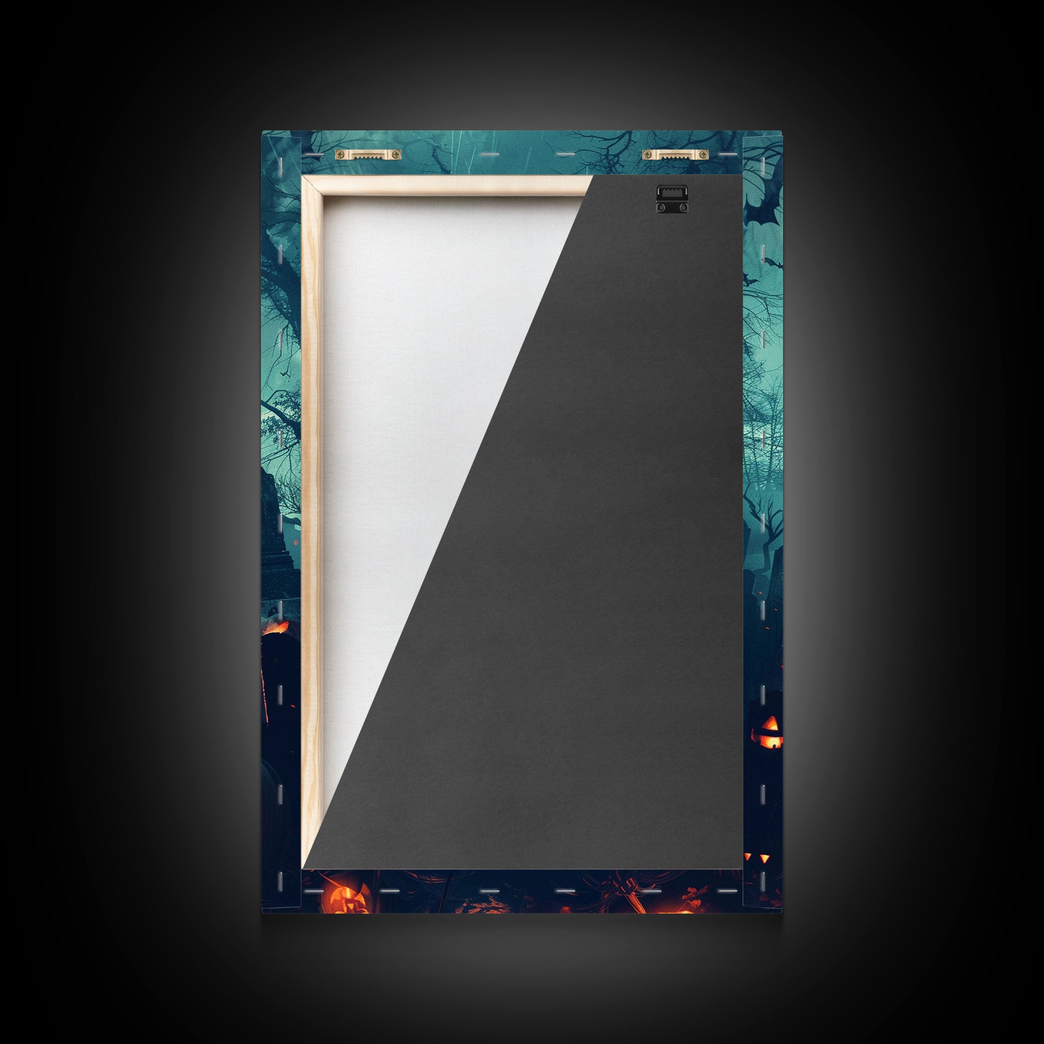 Bats and Jack-O-Lanterns Framed Canvas Print, Halloween Wall Art, Haunted Graveyard, Home Decor, Spooky Art, Living Room Decor, Gothic Art
