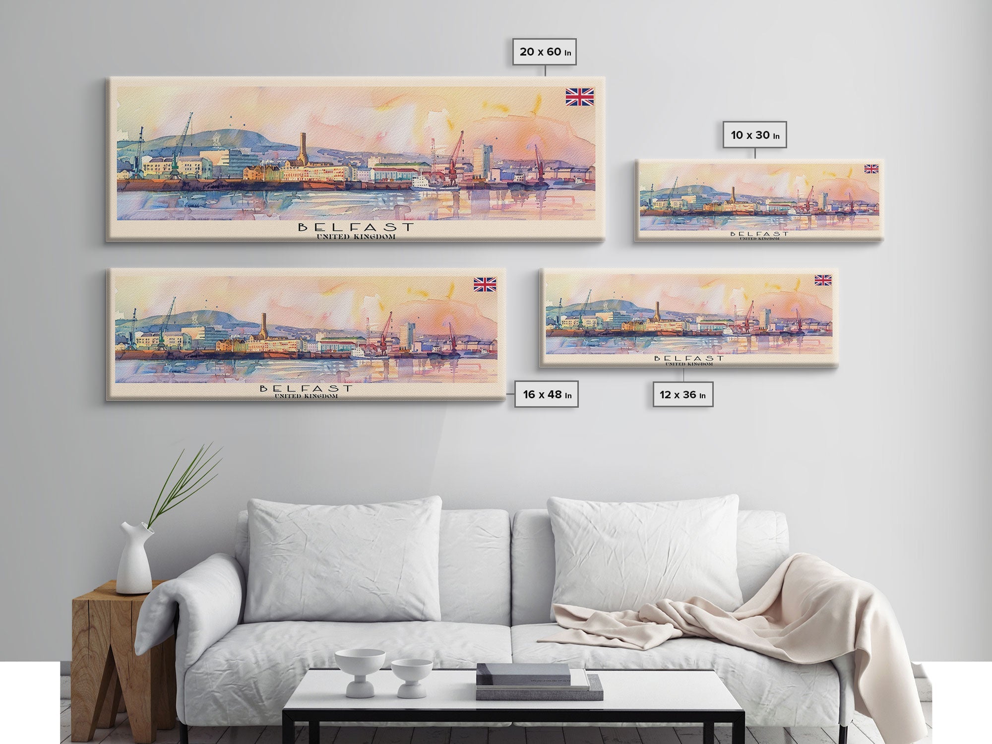 Belfast United Kingdom Travel Print Wall Art, Panoramic City Art, Travel Art, Wall Decor, Vacation Gift, Framed Canvas Print Or Metal Art