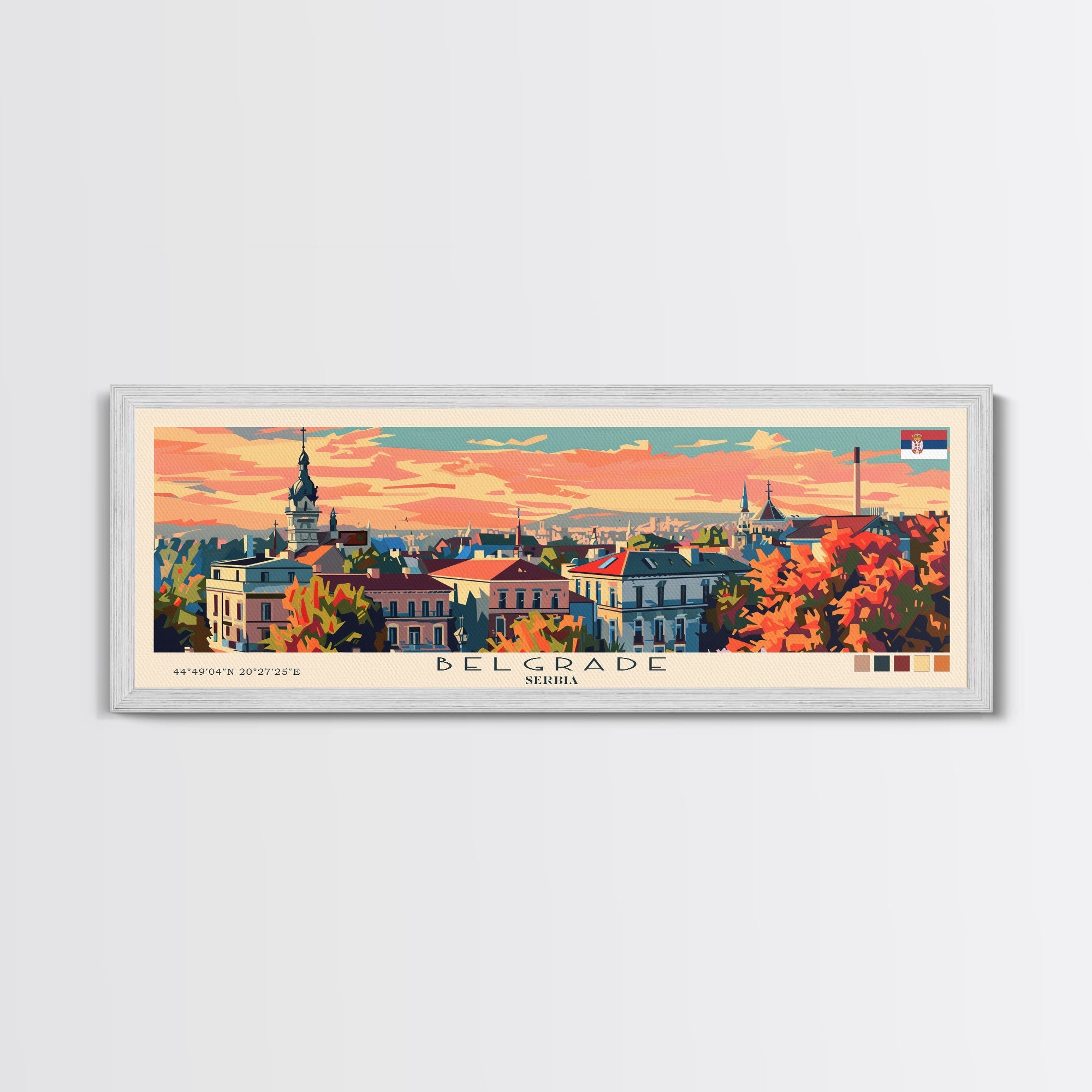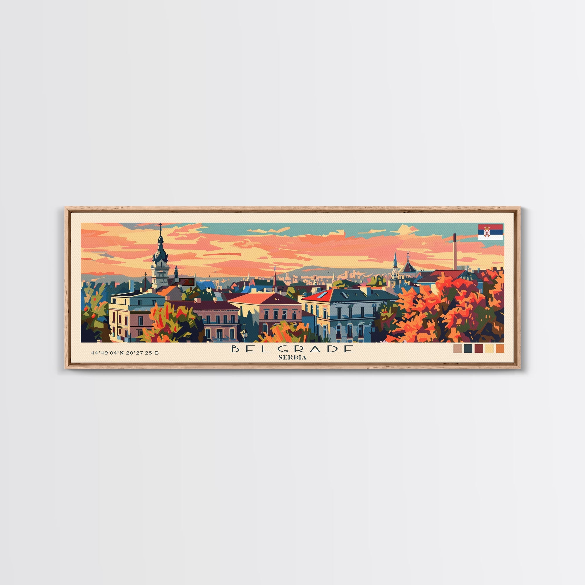 Belgrade Serbia Panoramic Travel Poster, Framed Canvas Print or Metal Wall Art, Travel Art, Home Decor, Panoramic Painting, Midcentury Art