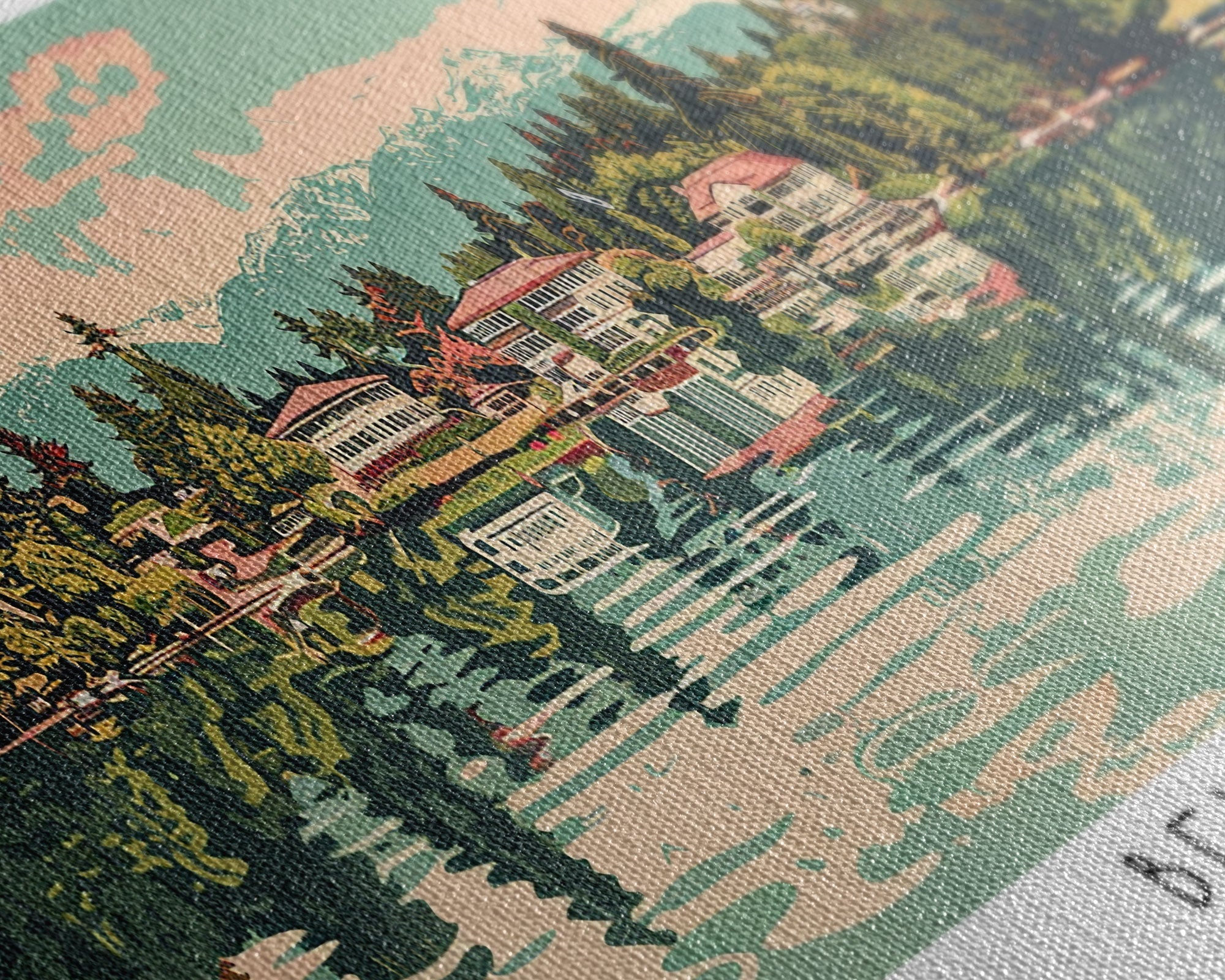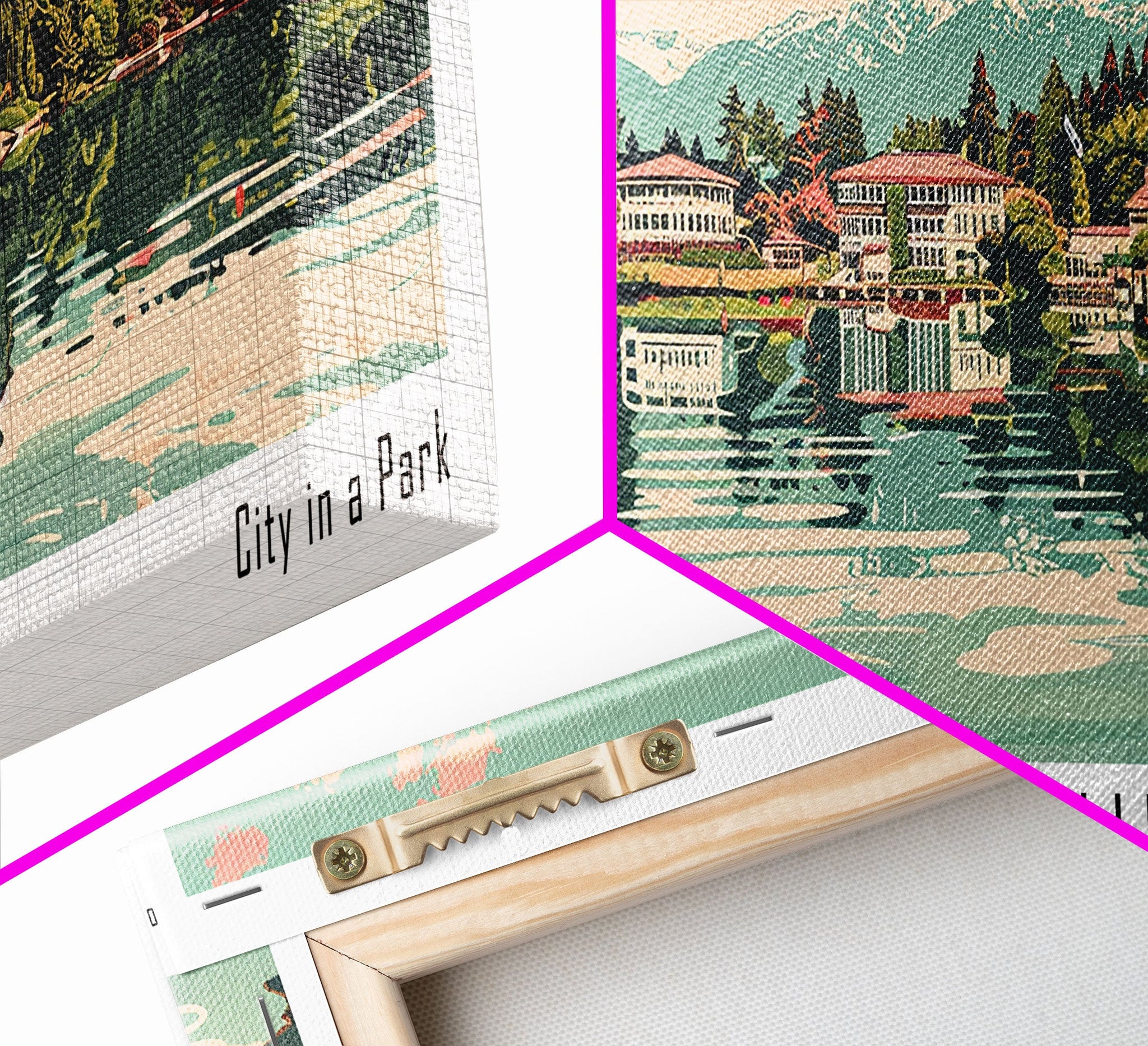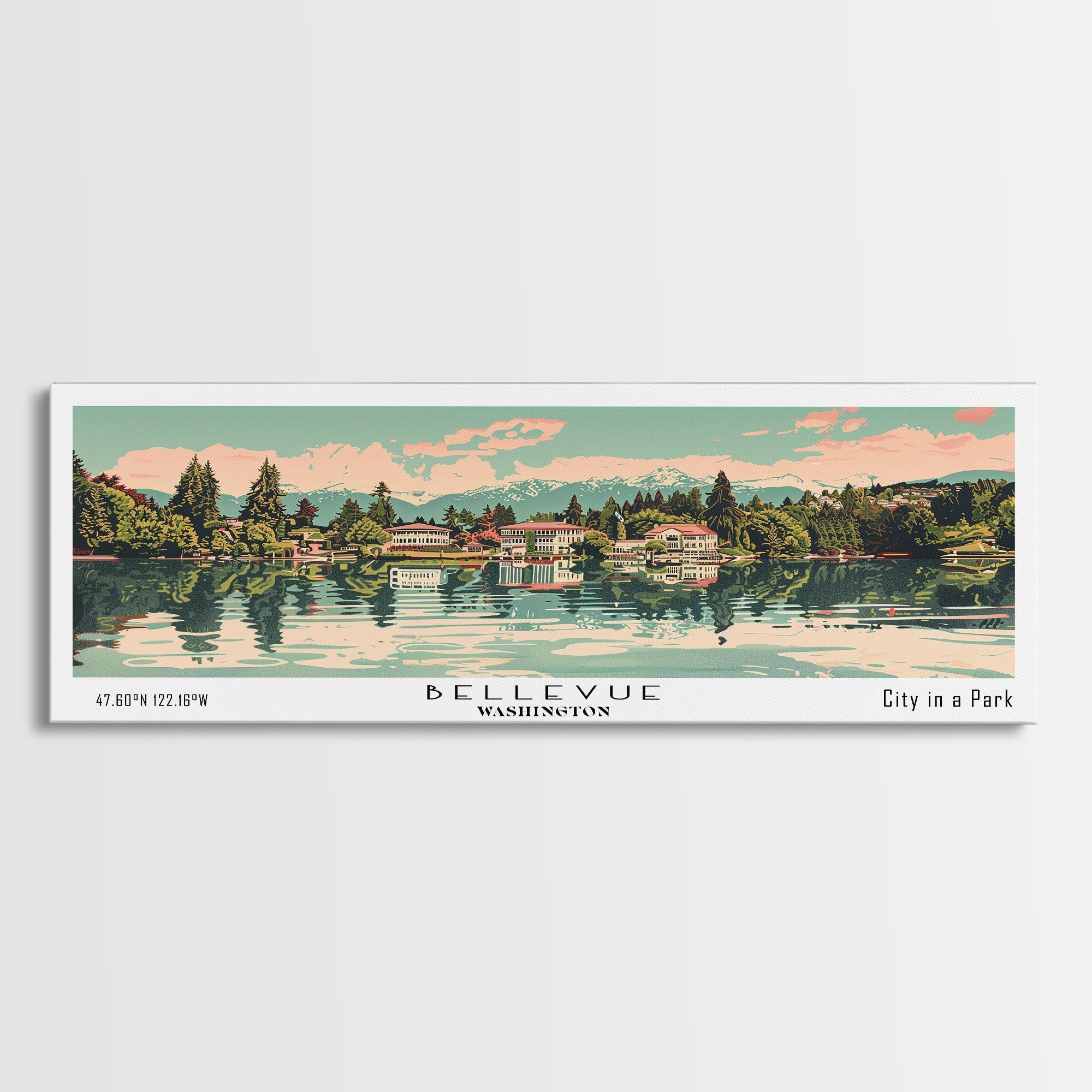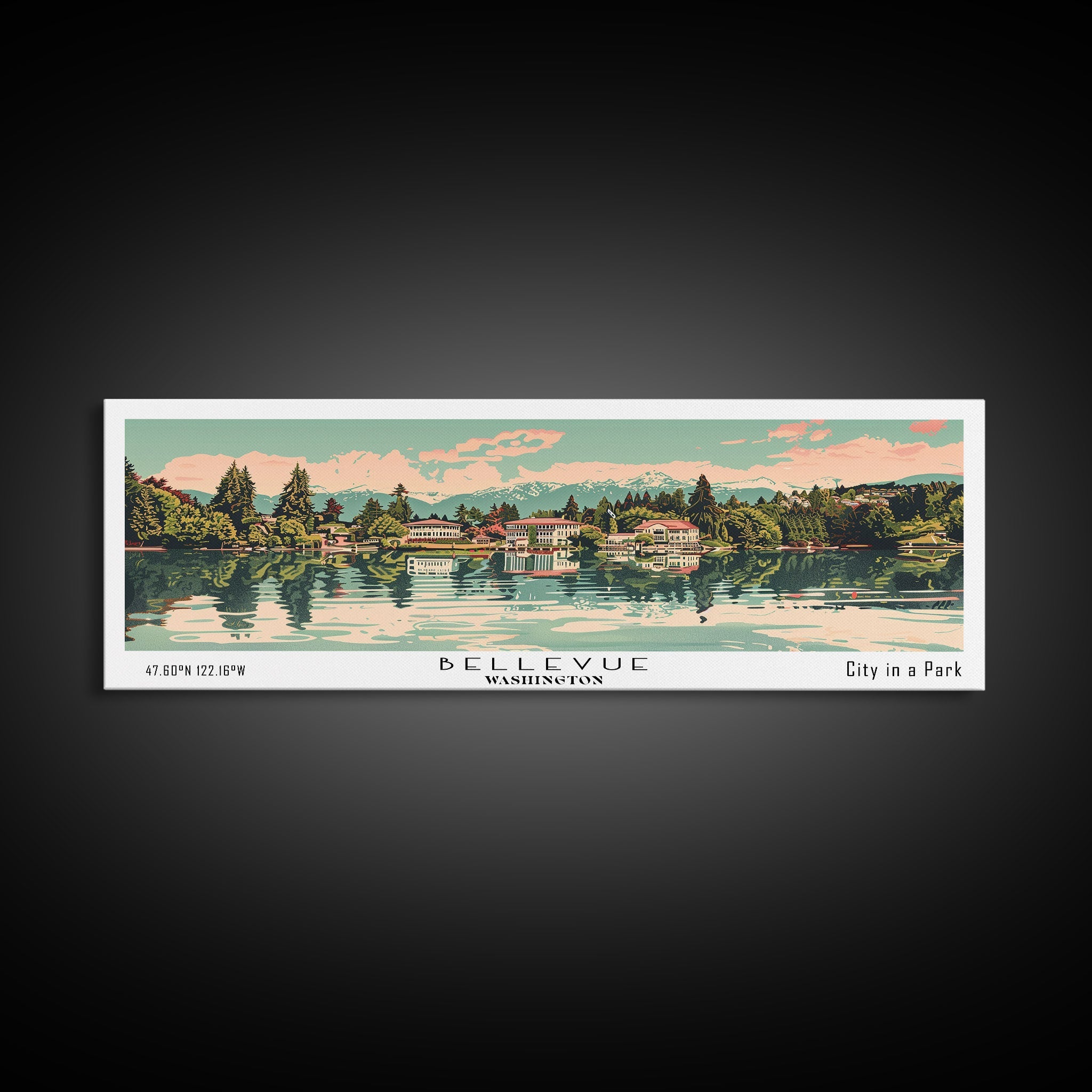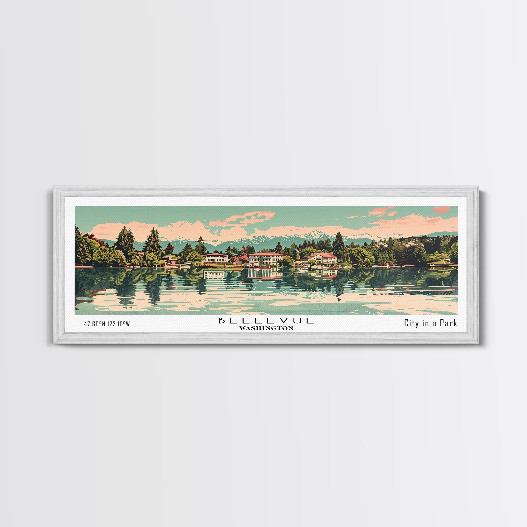 Bellevue Washington Panoramic Painting, Mid Century Modern Framed Canvas Print, Retro Pop Art Travel Poster, Office Wall Art, City Print