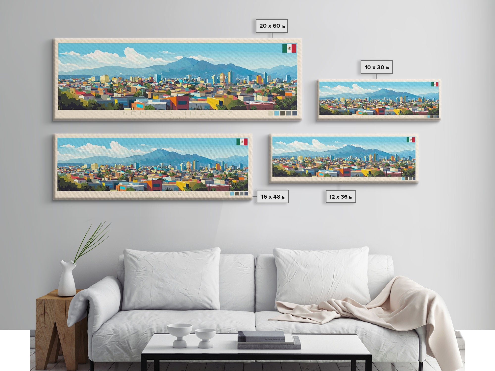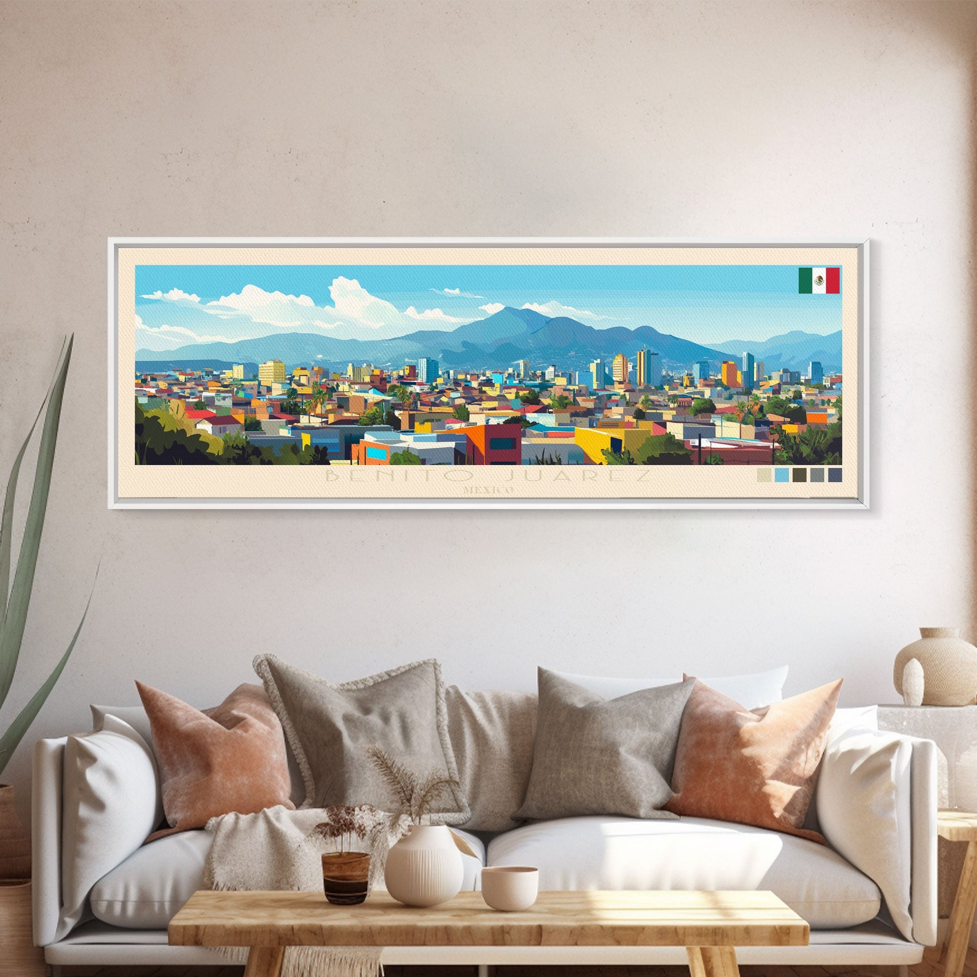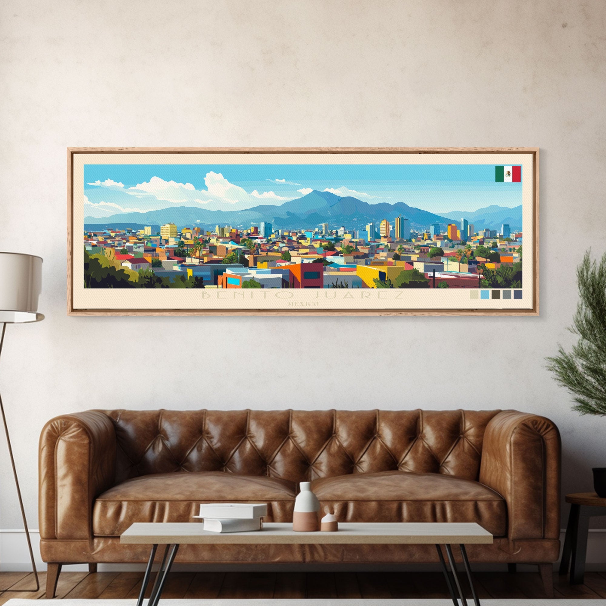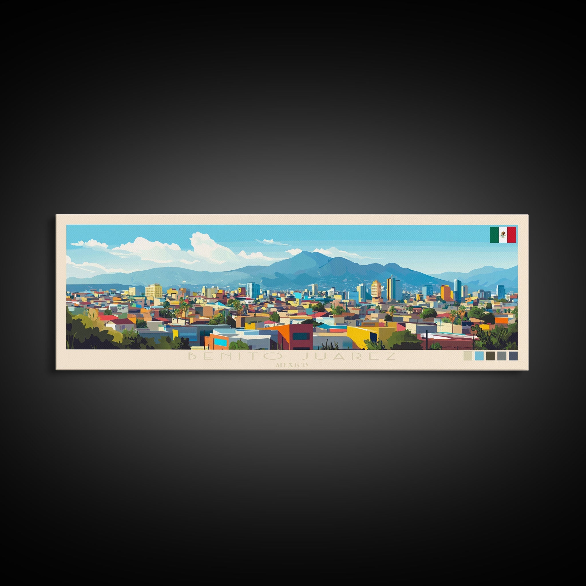 Benito Juarez, Mexico Panoramic Travel Poster Canvas Print, Benito Juarez, Mexico Painting, Mexico Art, Benito Juarez Travel Art, Guest Room Painting
