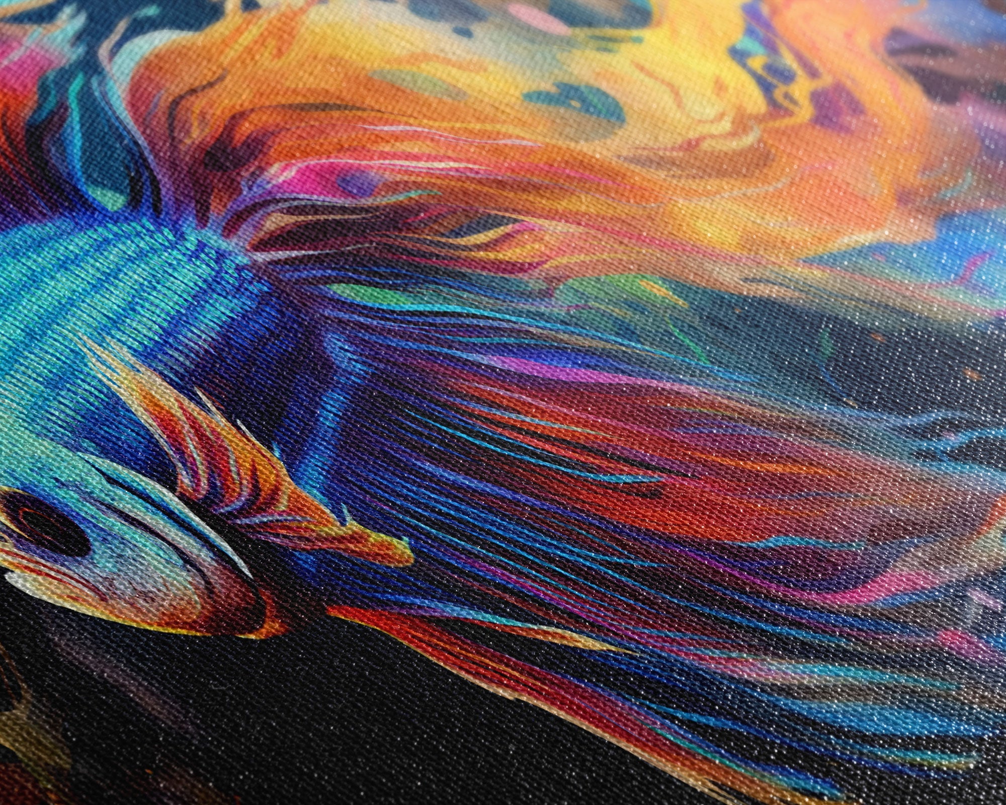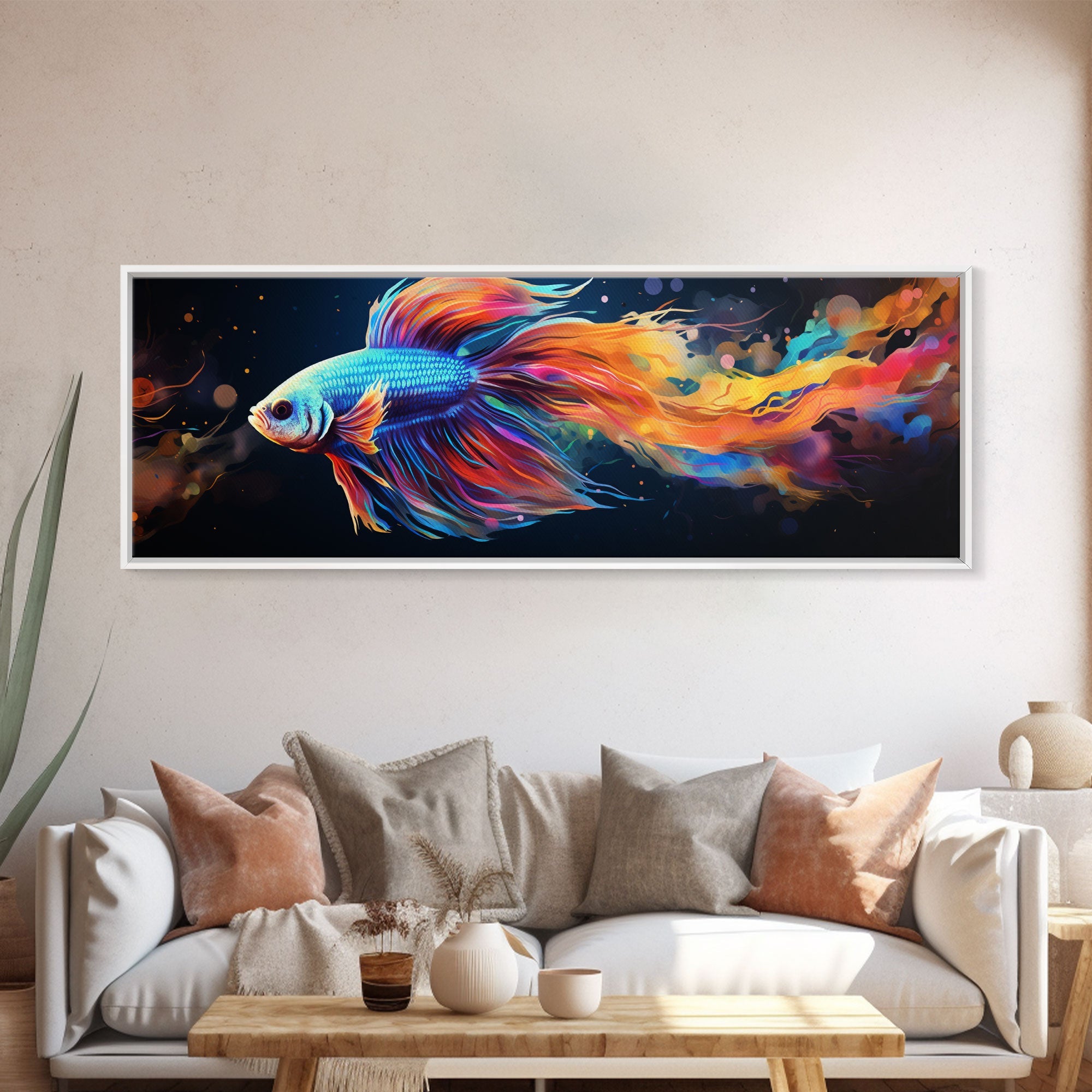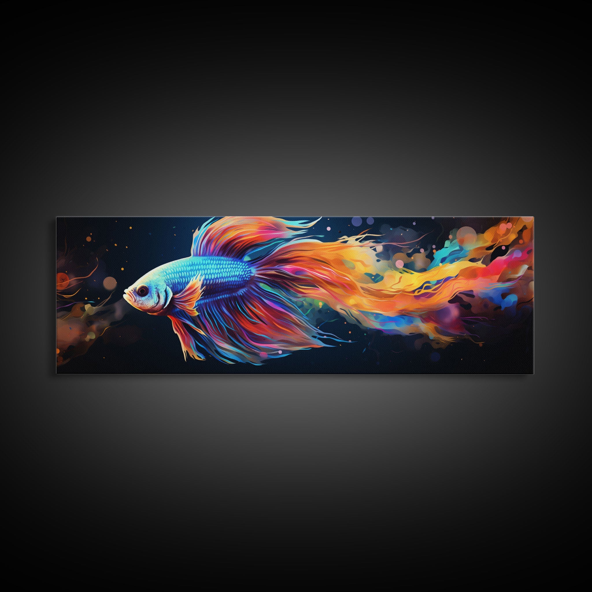 Betta Fish Painting Wall Art, Framed Canvas Print, Siamese Fighting Fish, Aquarium Wall Art, Colorful Pet Fish painting