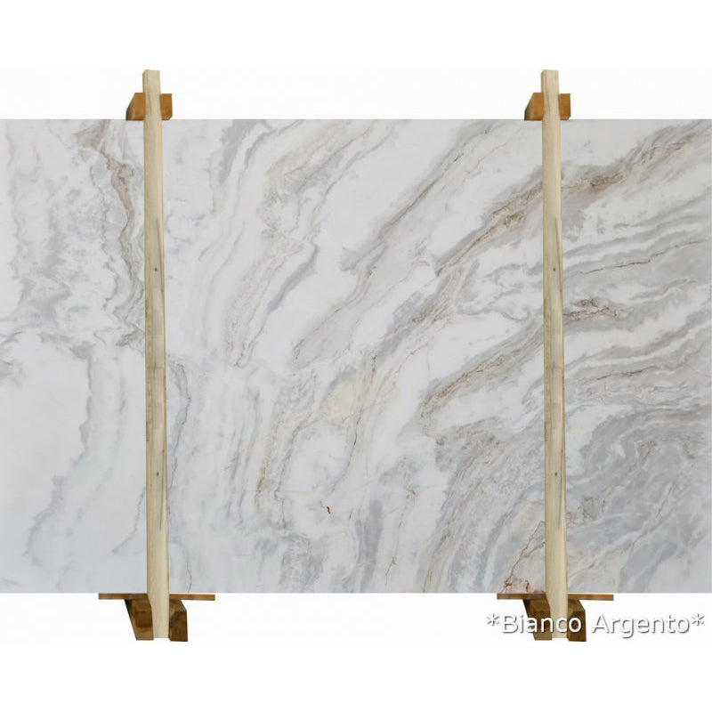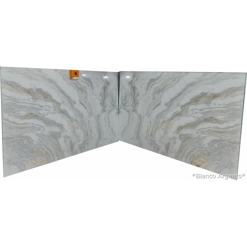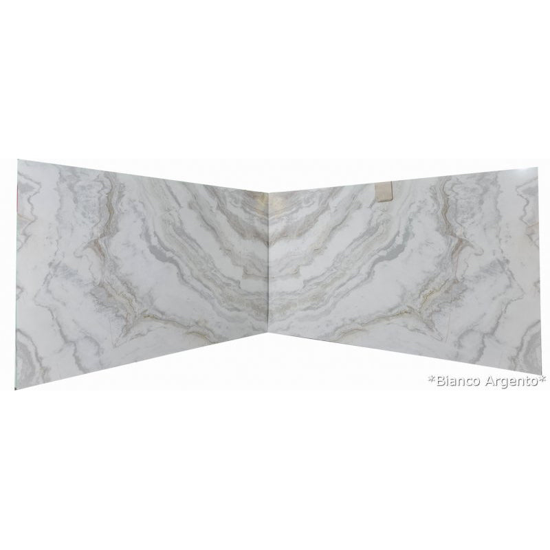 Bianco Argento White Bookmatching Marble Slabs Polished is available in 2cm(=3/4") or 3cm(=1 1/4") thick.