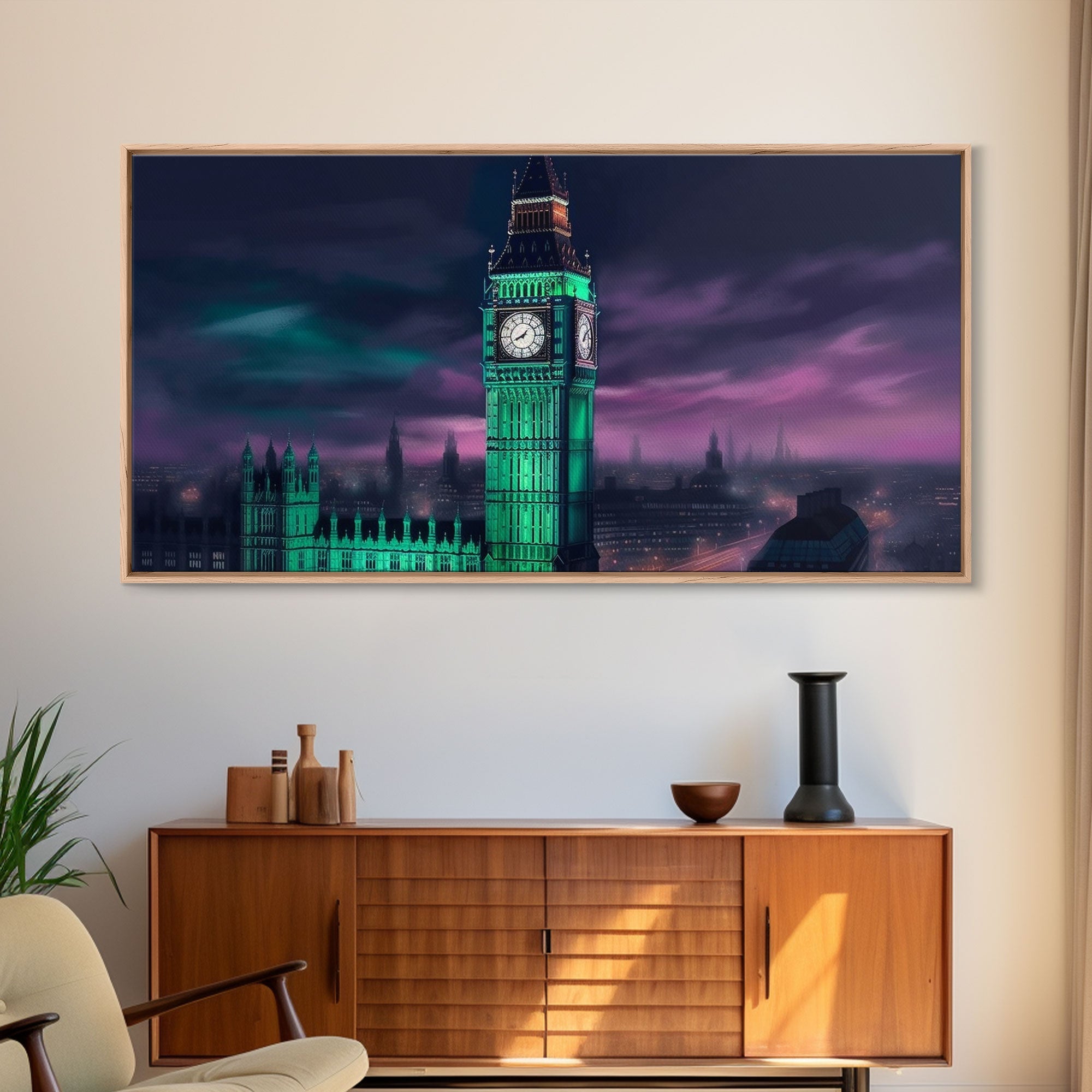 Big Ben Wall Art, London Landscape, Cityscape Wall Art, England Wall Decor, Panoramic Wall Decor, Canvas Print, Wall Art, Framed Canvas Art