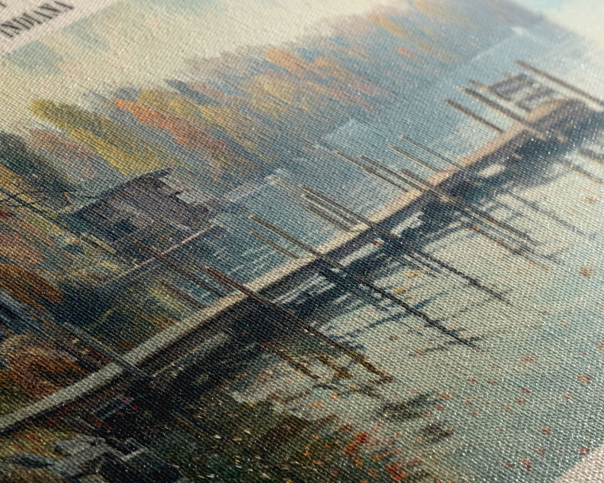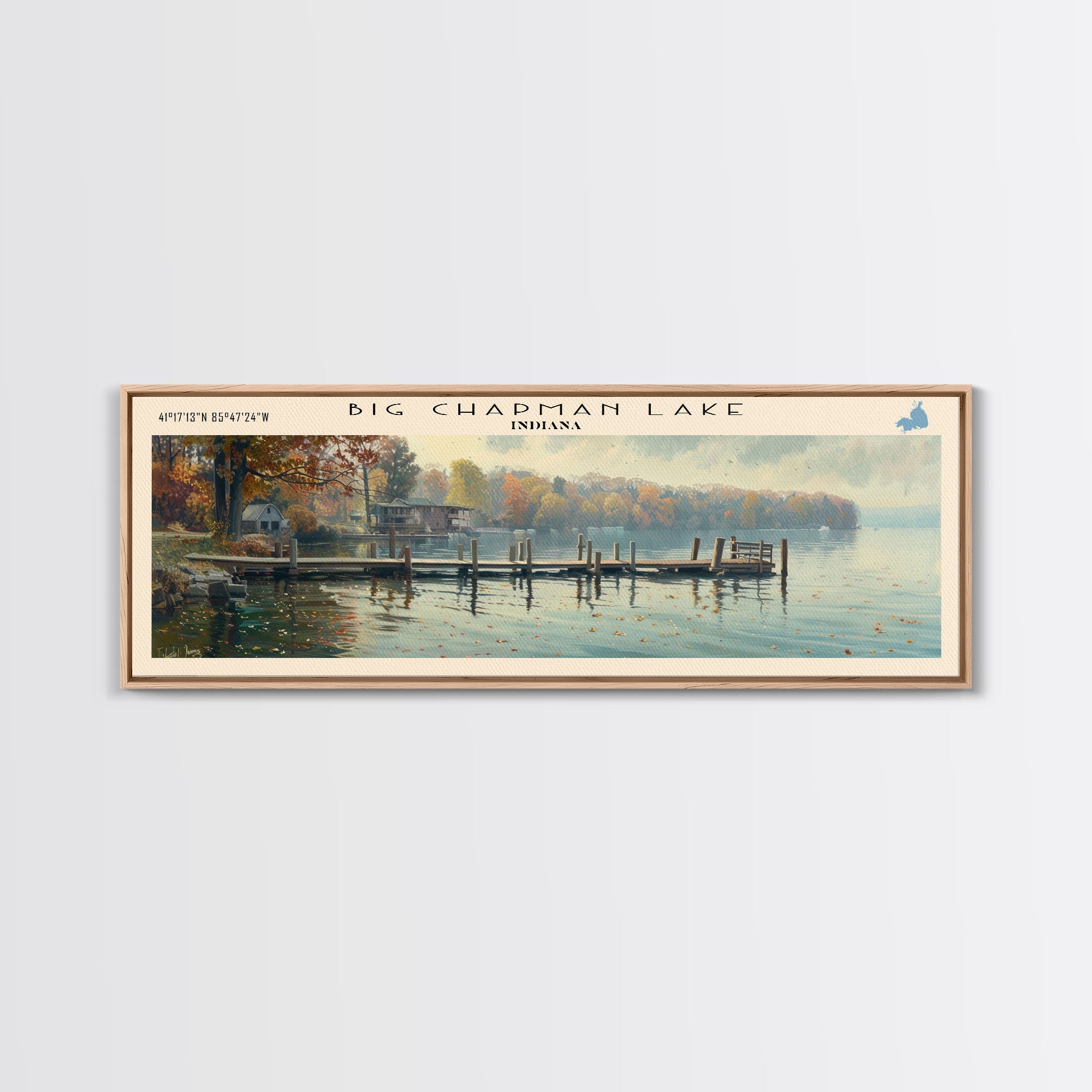 Big Chapman Lake Indiana Framed Canvas Print, Panoramic Lake House Art, Scenic Painting, Travel Poster, Rustic Art, Water Reflection