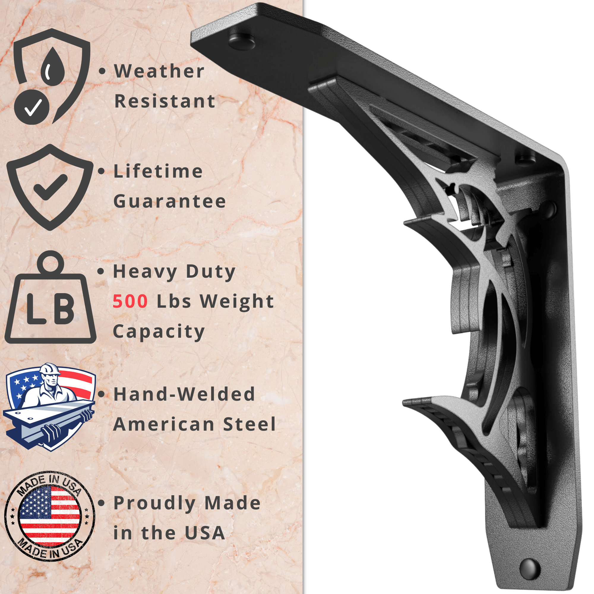 ● Clever packing: these shelf support brackets arrive damage free in study packaging. An ultra versatile solution: More than simply just metal shelf brackets, Billfish Classic supports from STARBY also make ideal corbels for countertops and even fireplace mantel mounting brackets. And with a black powder coat finish, you can get the appearance of cast iron shelf brackets for a fraction of the weight. Easy installation: Say goodbye to wooden shelf brackets that are difficult to install. STARBY black shelf brackets include all necessary screws and even come with decorative screw covers for an upgraded appearance. Lifetime warranty: Our heavy duty shelf supports are covered by STARBY’s lifetime warranty. If you don’t love your heavy duty shelf supports for any reason, simply let us know what the issue is with your shelf hardware and we’ll do whatever we can to make things right. No fuss, no tricks, no fine print; just incredible customer service.