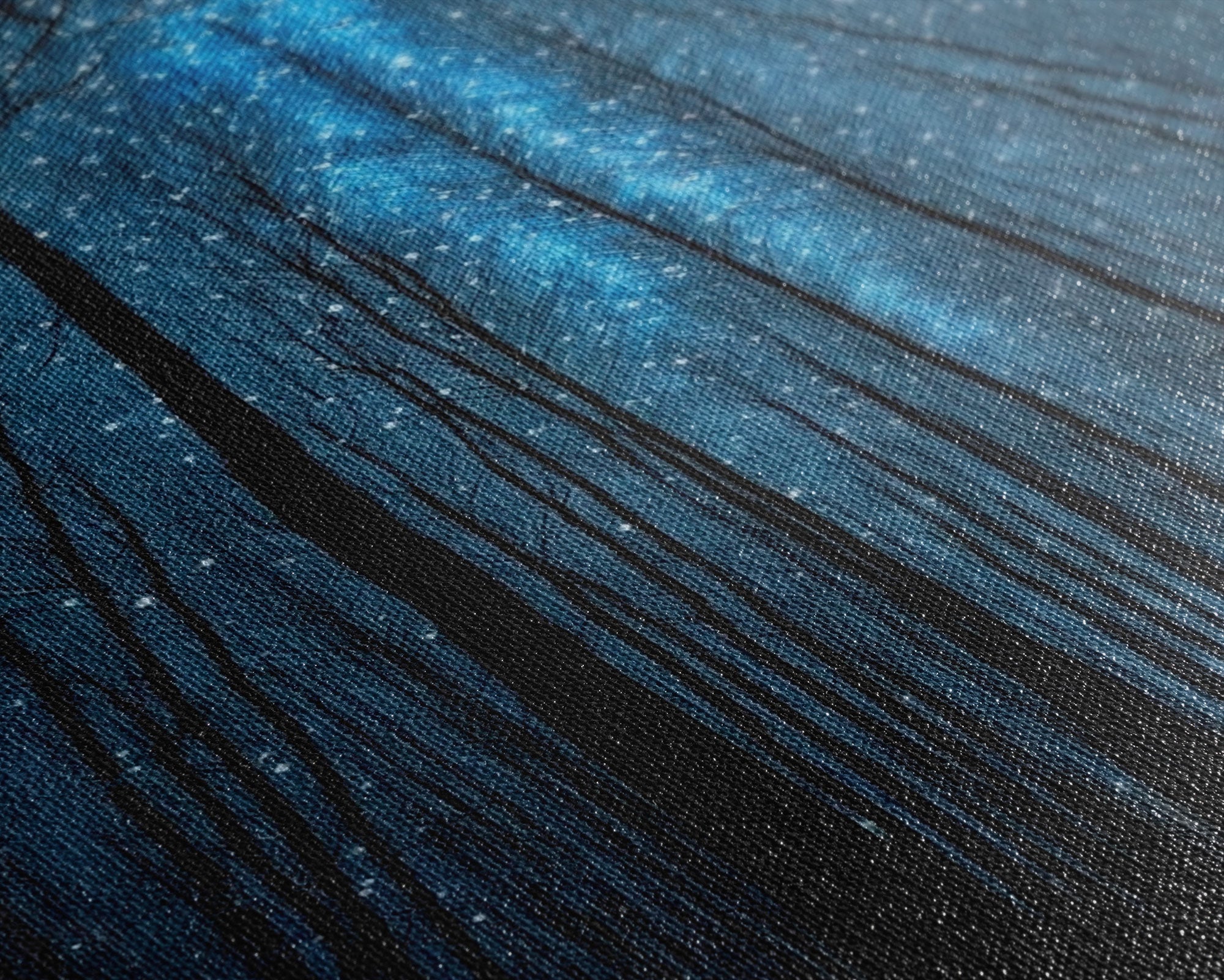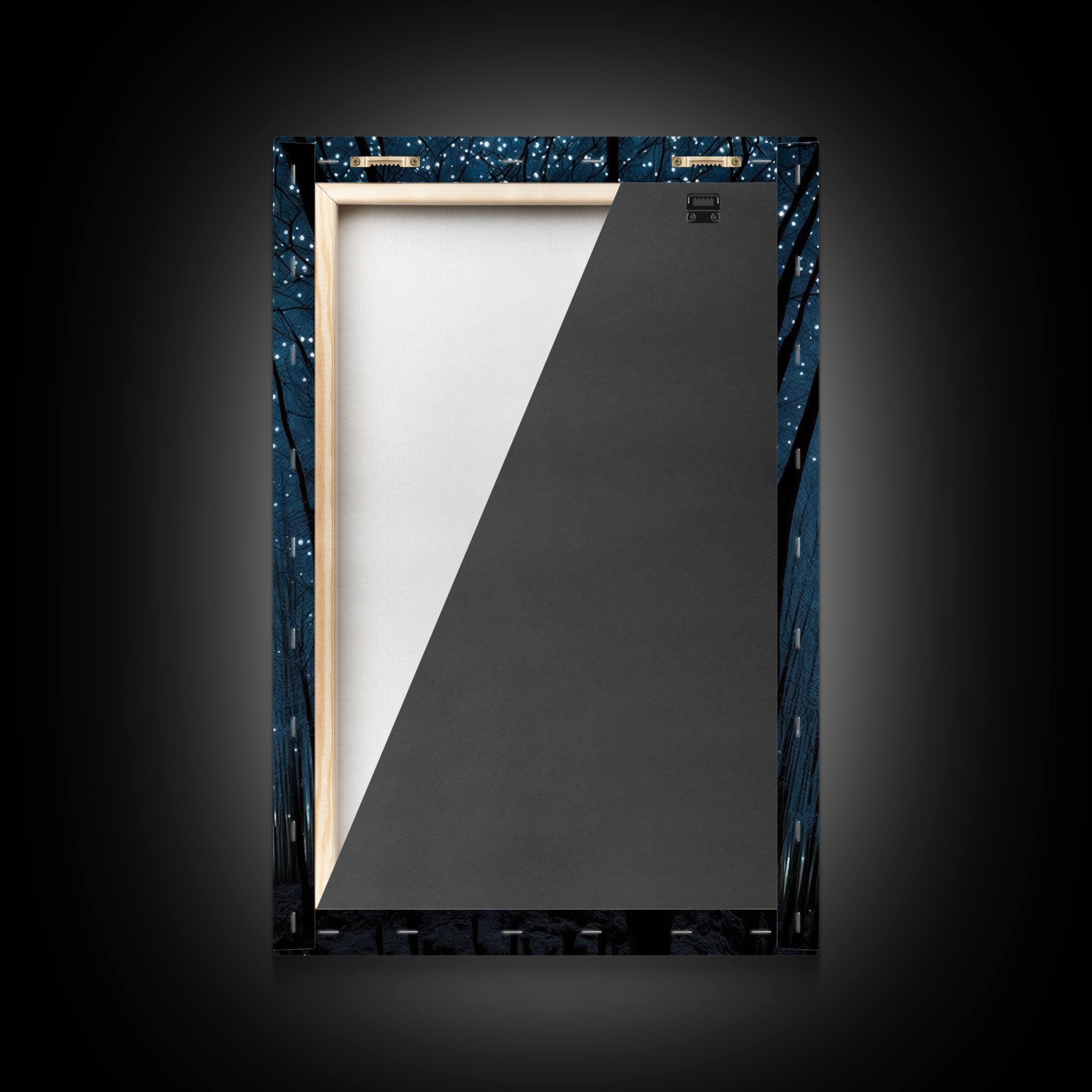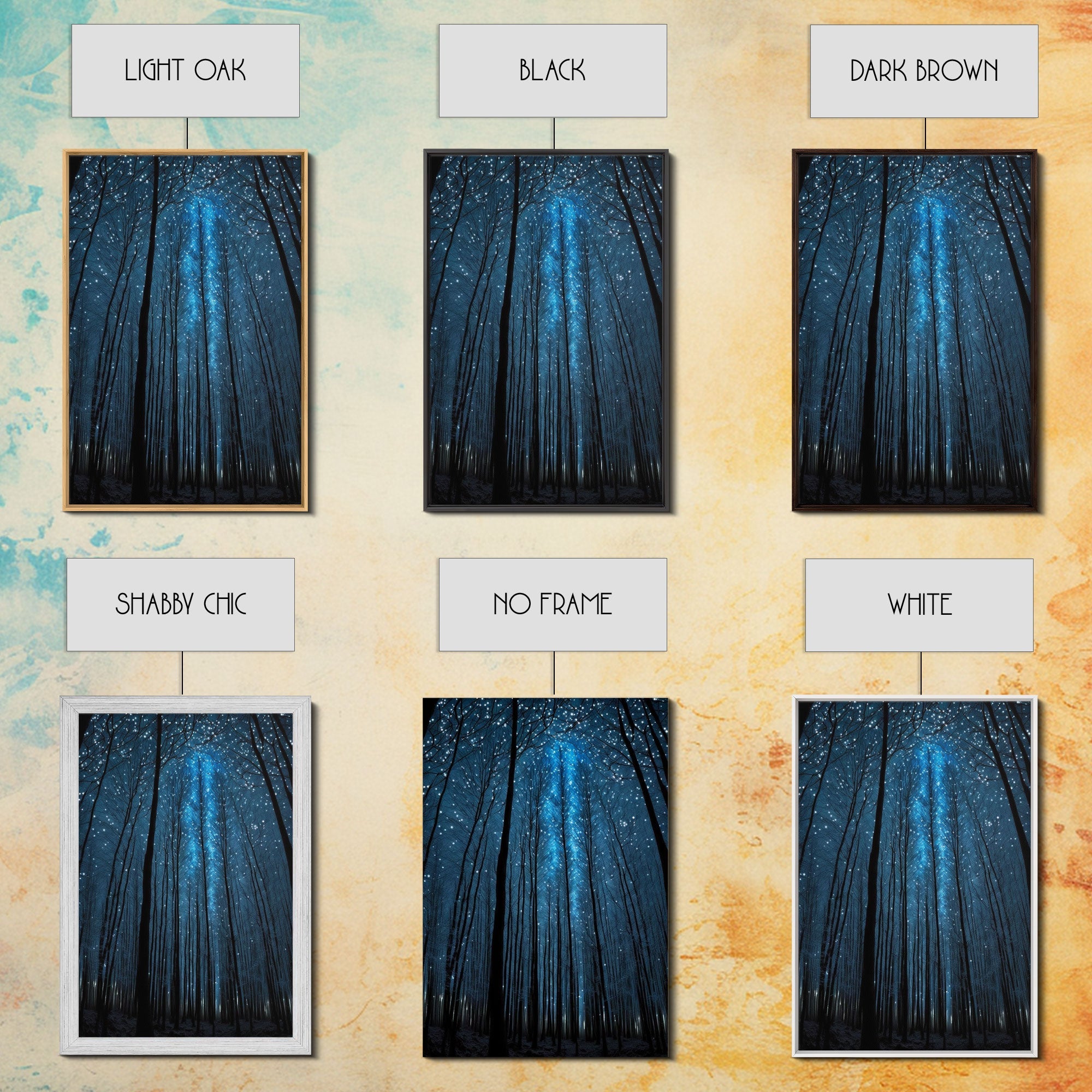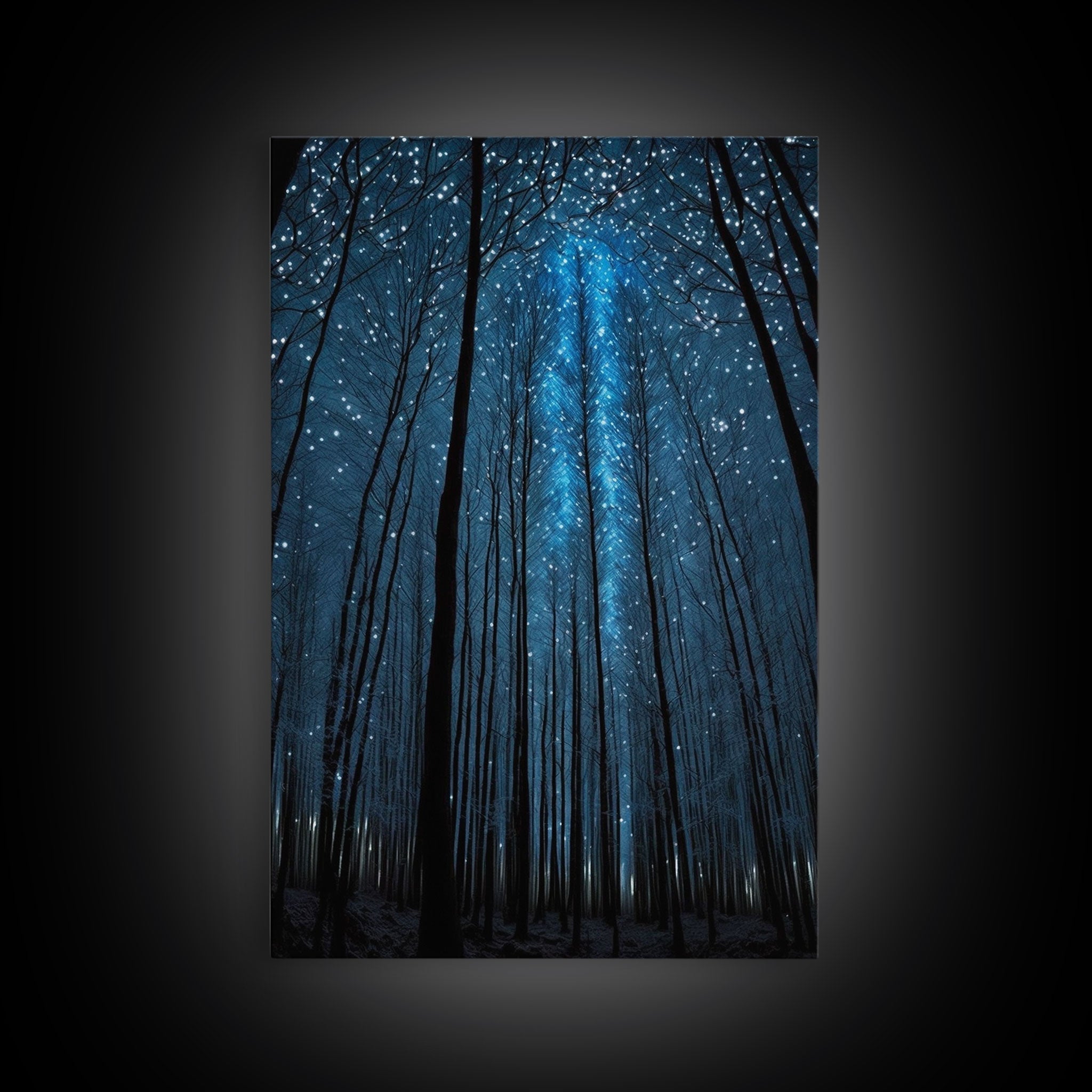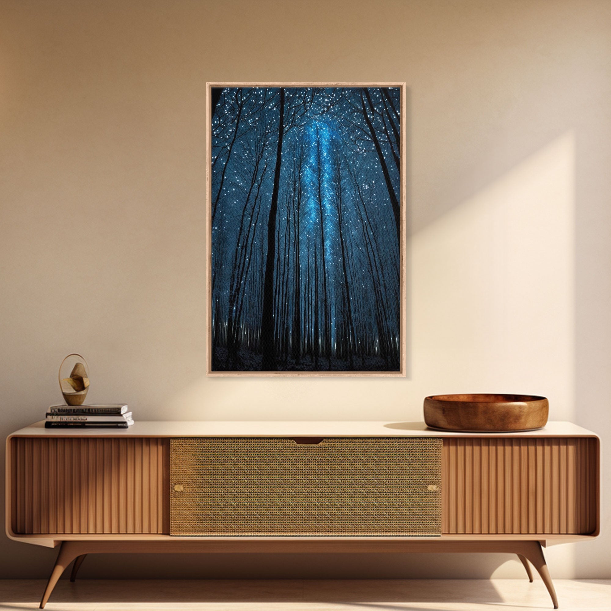 Birch Tree Forest At Night, Starry Night Sky, Framed Canvas Print, Boho Minimalist Farmhouse Decor, Primitive Art