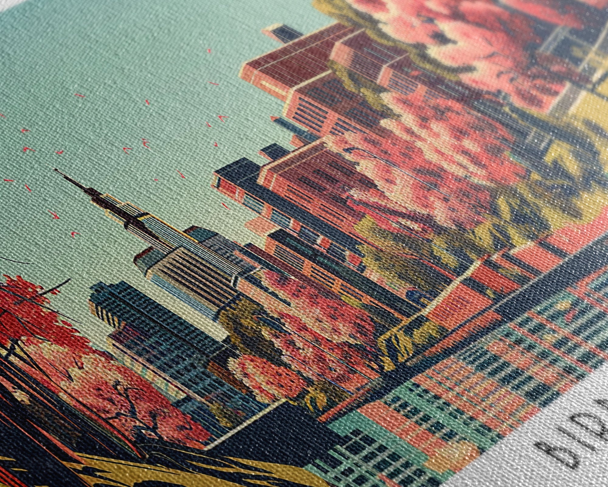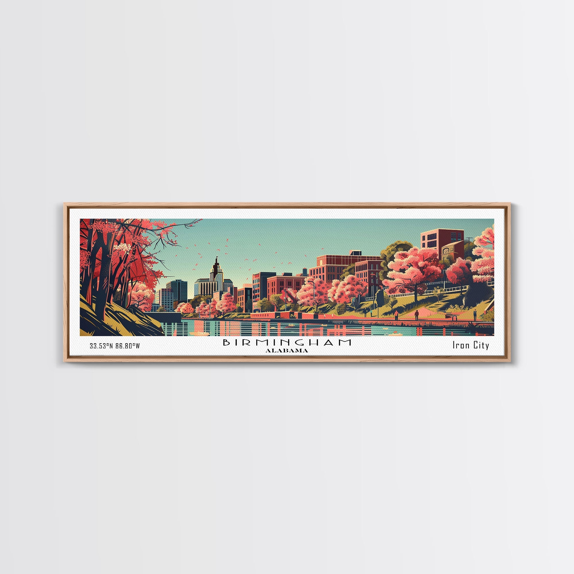 Birmingham Alabama Panoramic Painting, Framed Canvas Print, Mid Century Modern Wall Art, Retro Pop Art Travel Poster, Office Decor, City Art