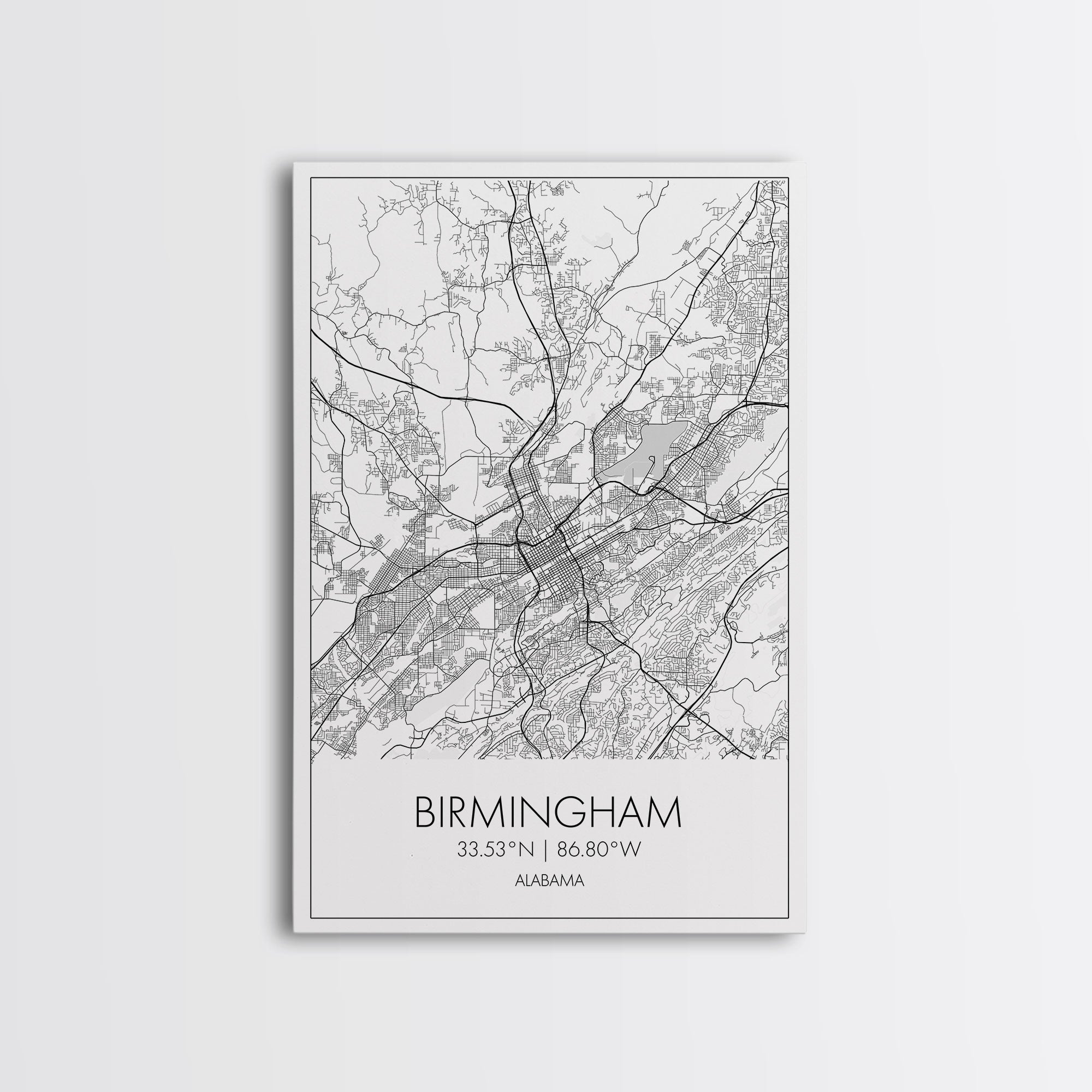 Birmingham Street Map, Alabama Map, City Map Art, Modern Art, Wall Art, Canvas Print, Canvas Wall Art, Minimalist Art, Housewarming Gift