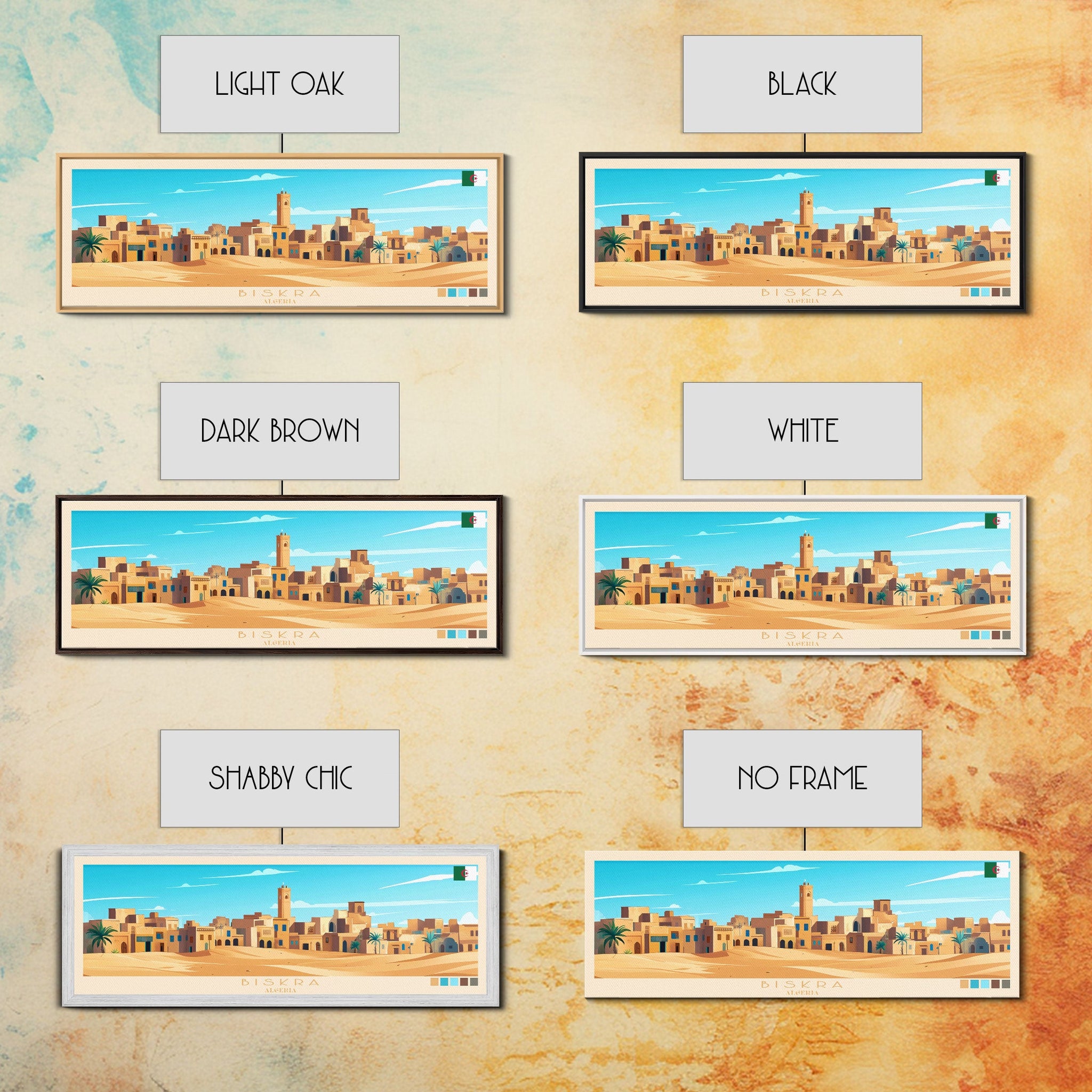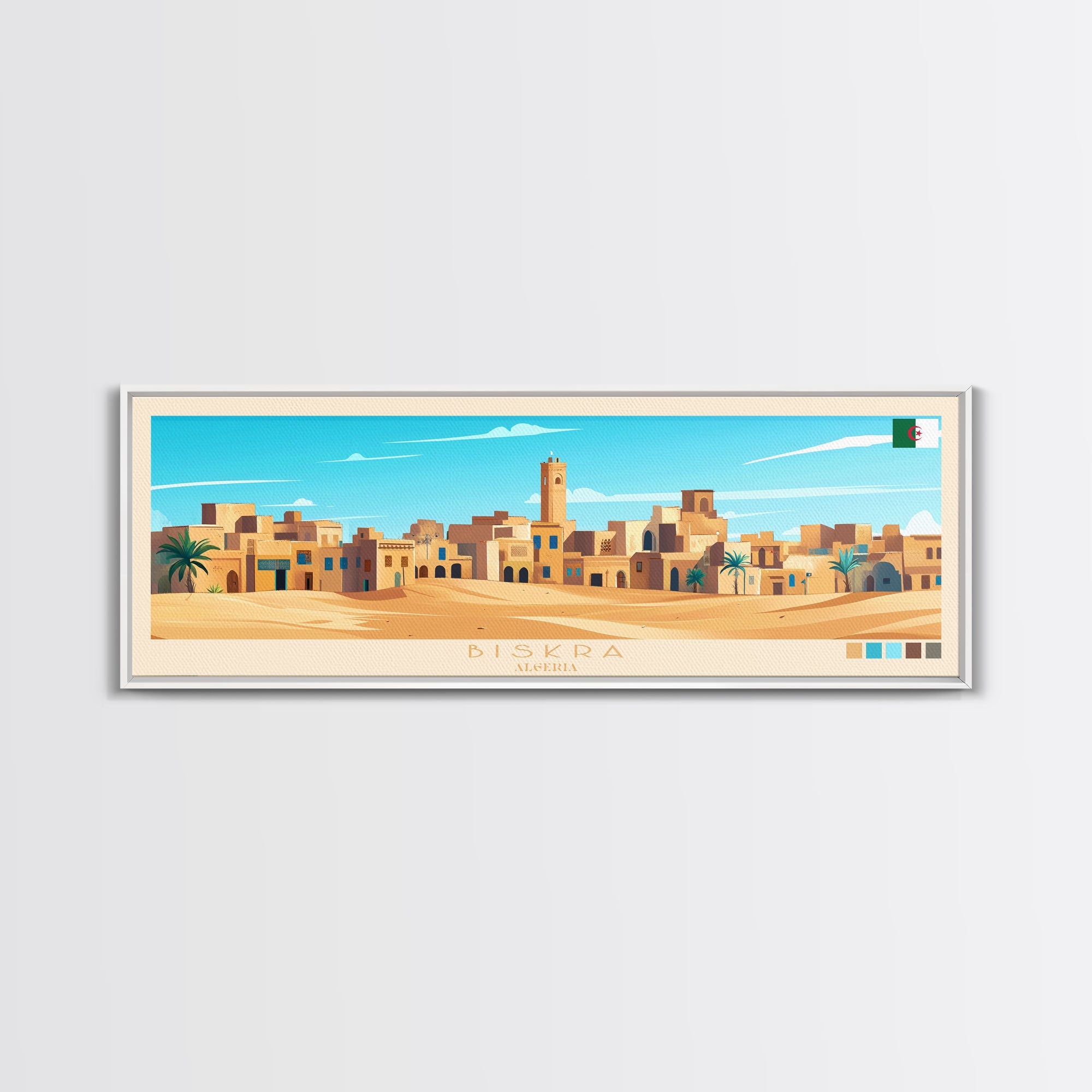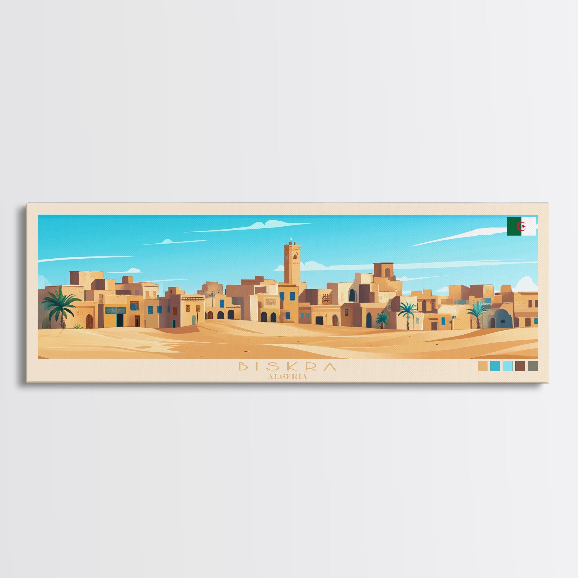 Biskra, Algeria Panoramic Travel Poster Canvas Print, Biskra, Algeria Painting, Algeria Art, Biskra Travel Art, Guest Room Painting