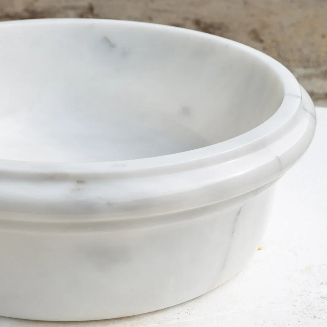 Carrara White Marble Natural Stone Waterfall Drop-in or Above Vanity Sink (D)17" (H)6" is Handcrafted in Turkey and suitable for drop-in or over-countertop installation.