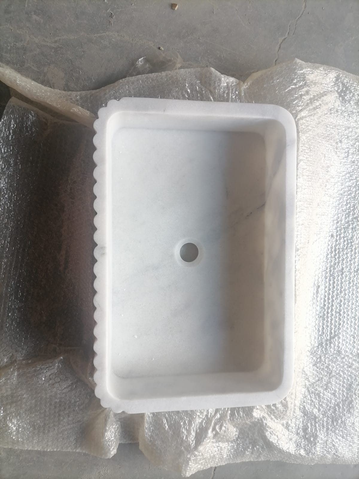 Carrara White Marble Wall-mount Bathroom Sink Ribbed Textured (W)16" (W)24" (H)6" is a great add on for your bathrooms.