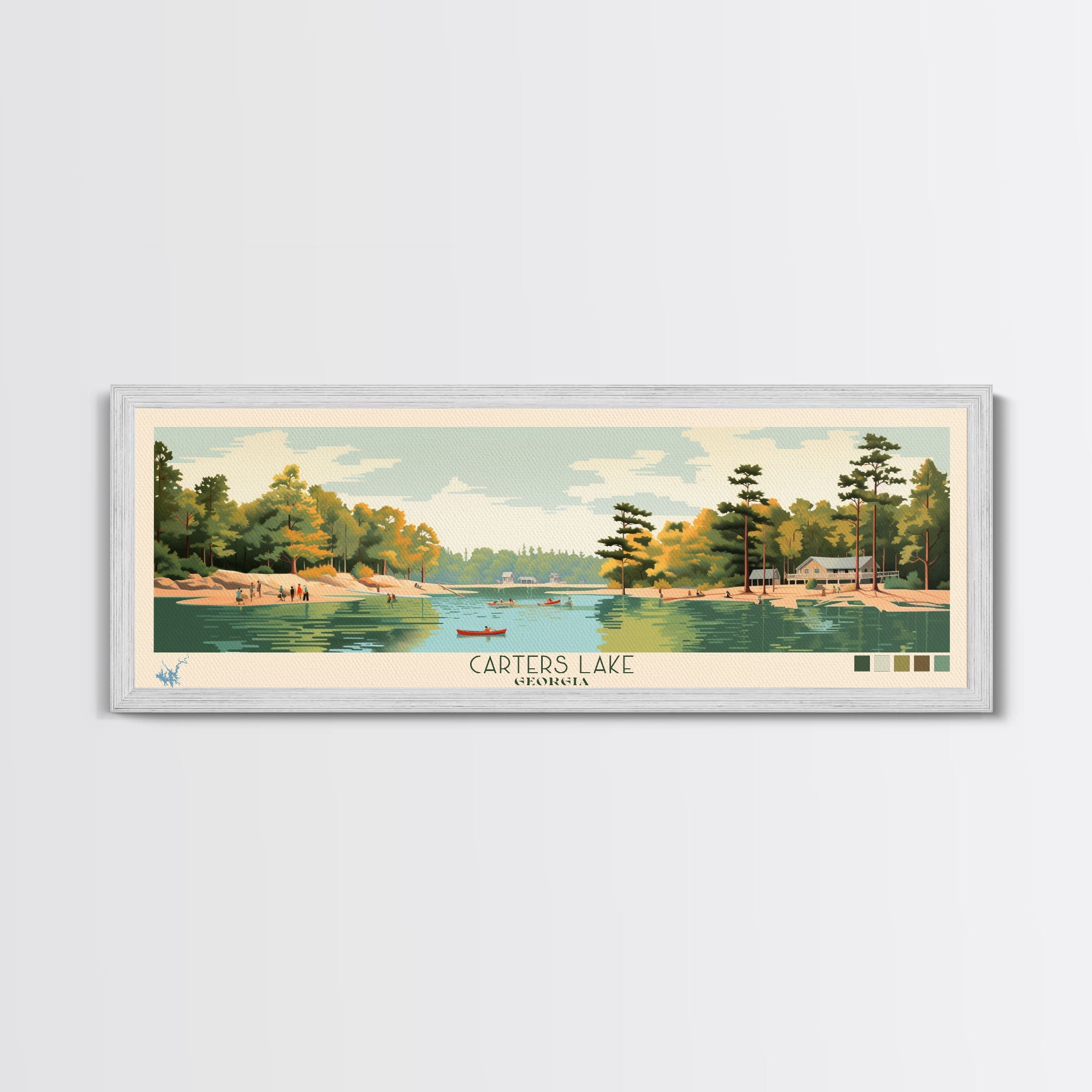 Carters Lake Georgia Framed Canvas Print, Pop Art Panoramic Travel Poster, Midcentury Modern, Wall Art, Scenic Nature Painting, Bedroom Decor, Living Room Art