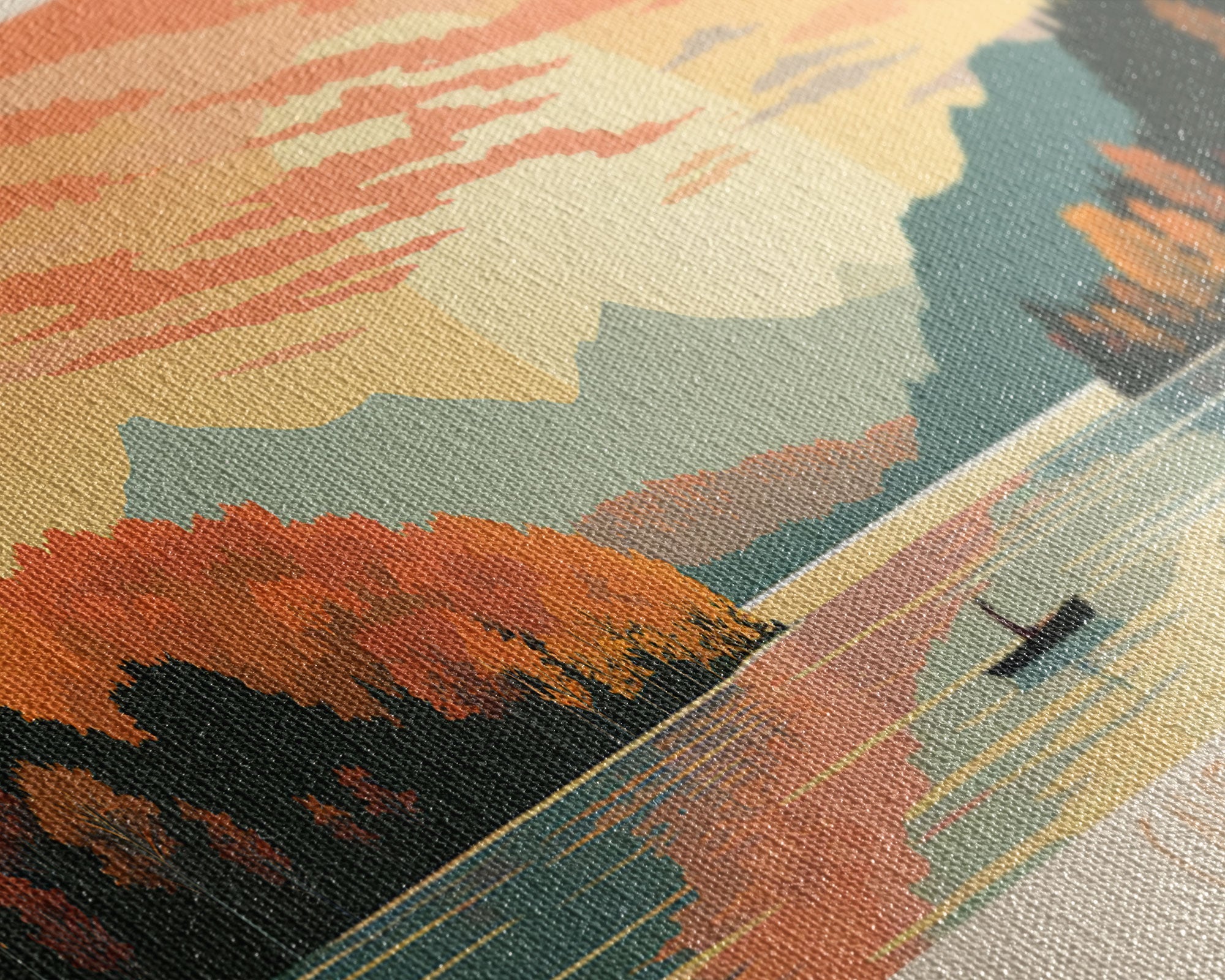 Most of our canvases are made in the USA, with the exception of canvases ordered with the light oak unstained frames, and any large canvases (24x48, 30x60, 16x48 and 20x60) ordered WITH a frame. These are temporarily made in and shipped from Europe, while we try to find a more consistent supplier in the USA.