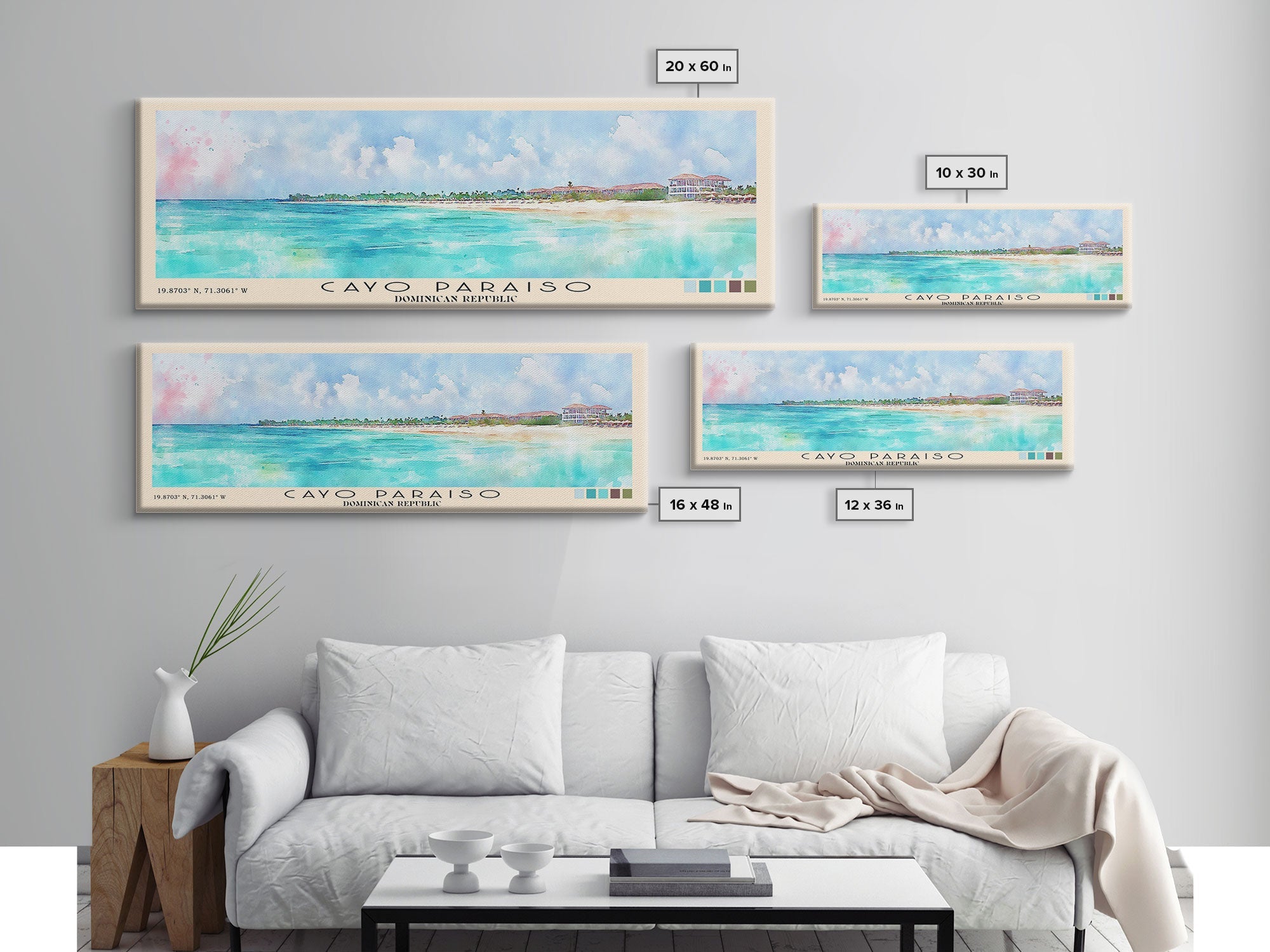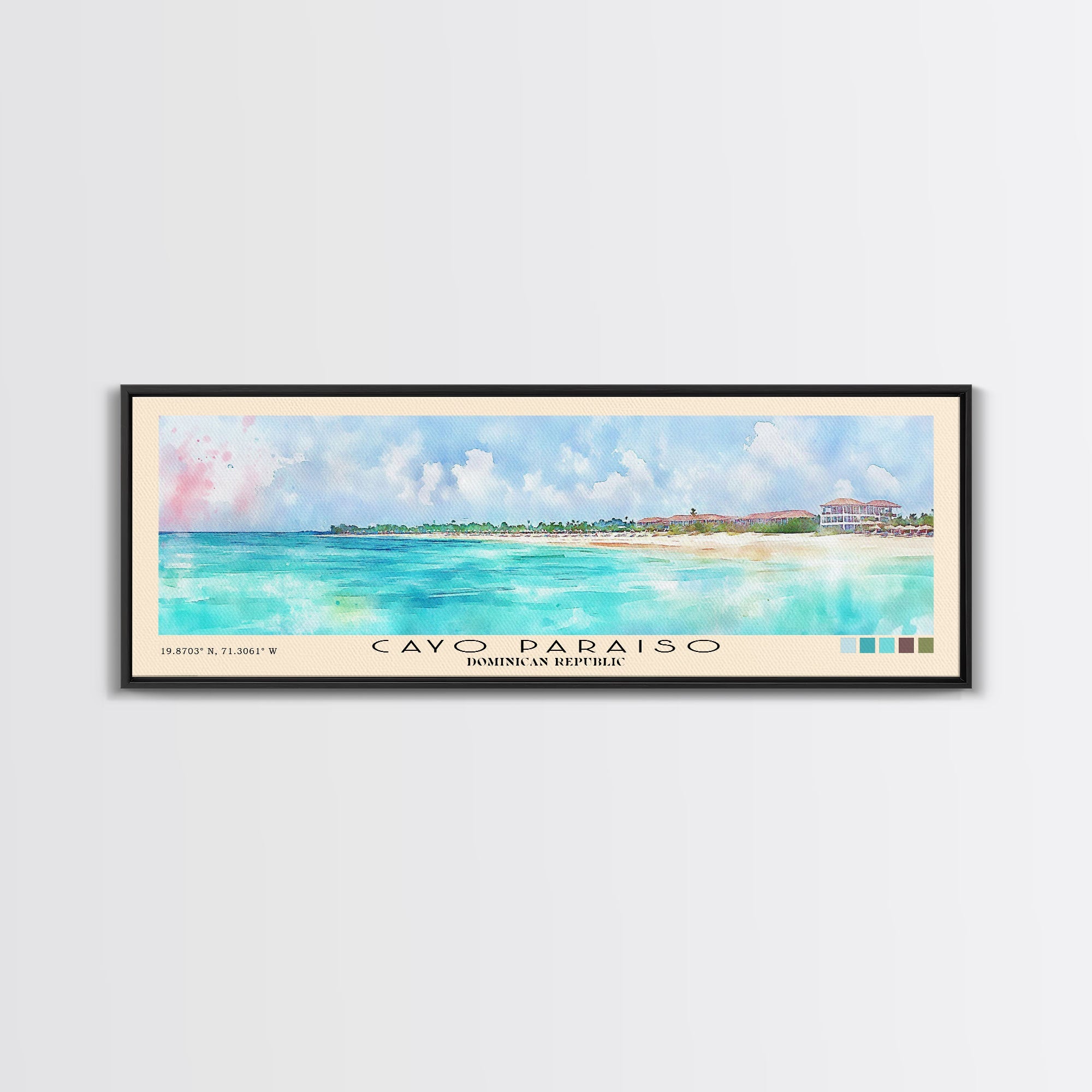 Cayo Paraiso, Dominican Republic Watercolor Beach Print, Vacation Gift, Dominican Republic Wall Art, Framed Canvas Print, Framed Beach Painting