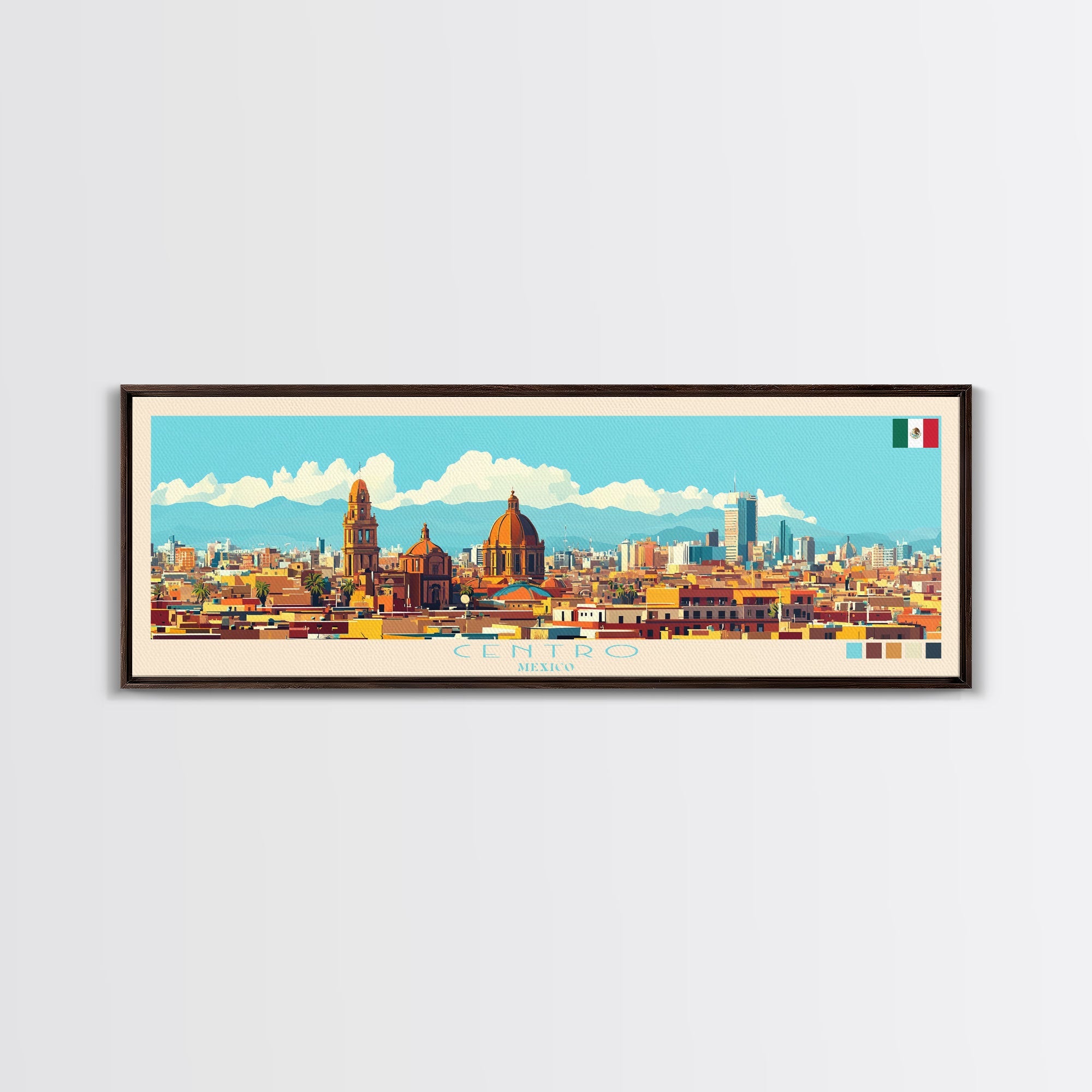 Centro, Mexico Panoramic Travel Poster Canvas Print, Centro, Mexico Painting, Mexico Art, Centro Travel Art, Guest Room Painting