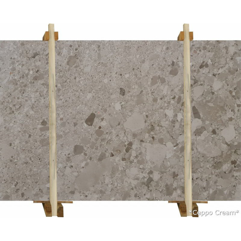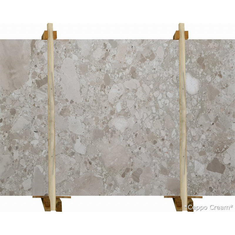 Ceppo Cream Conglomerate Bookmatching Marble Slabs Polished is available in 2cm(=3/4") or 3cm(=1 1/4") thick.