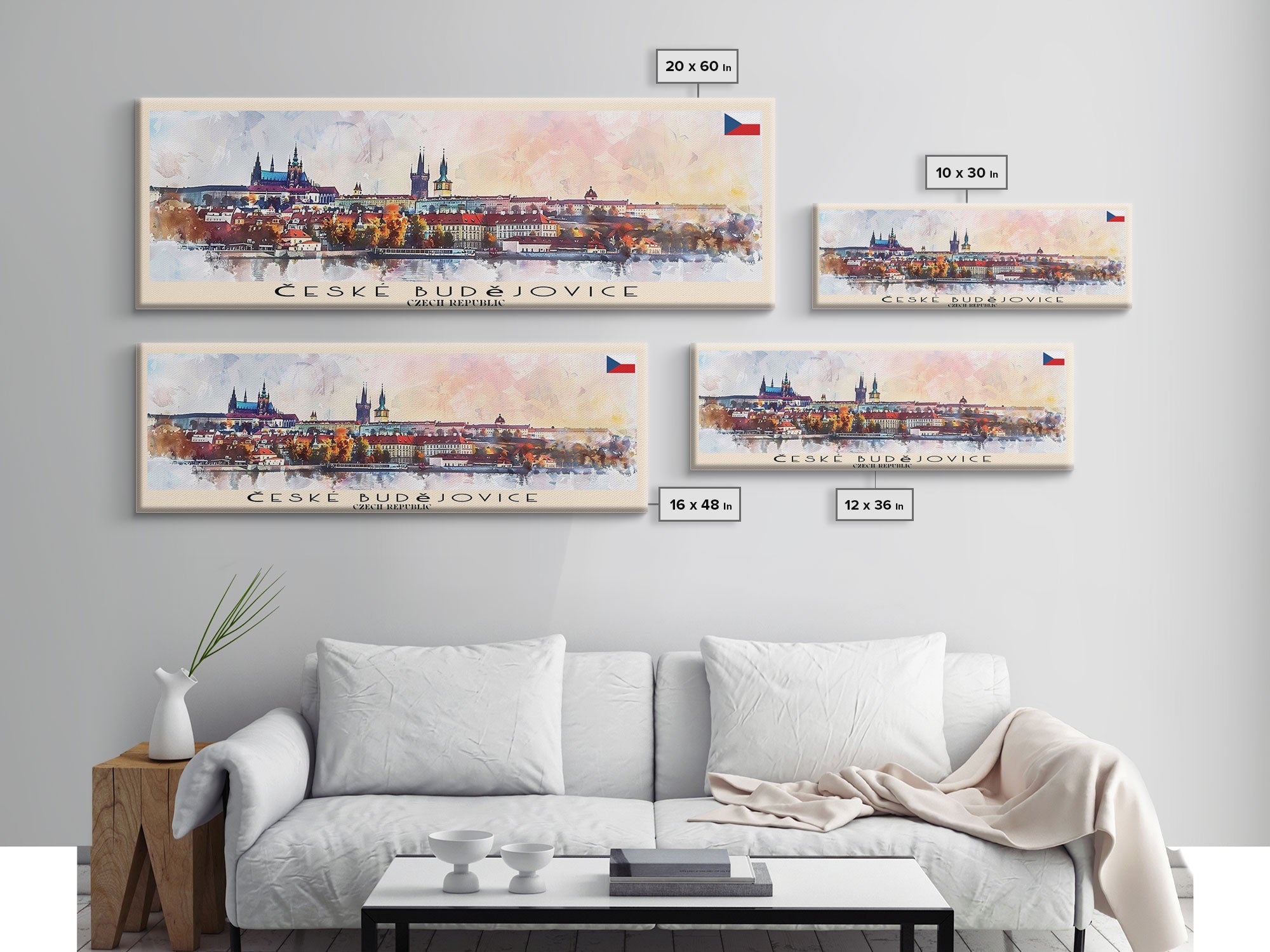 Ceske Budejovice Czech Republic Wall Art, Panoramic Travel Poster, Panoramic Framed Canvas Print, City Wall Art, Wall Hanging Home Decor, Travel Art