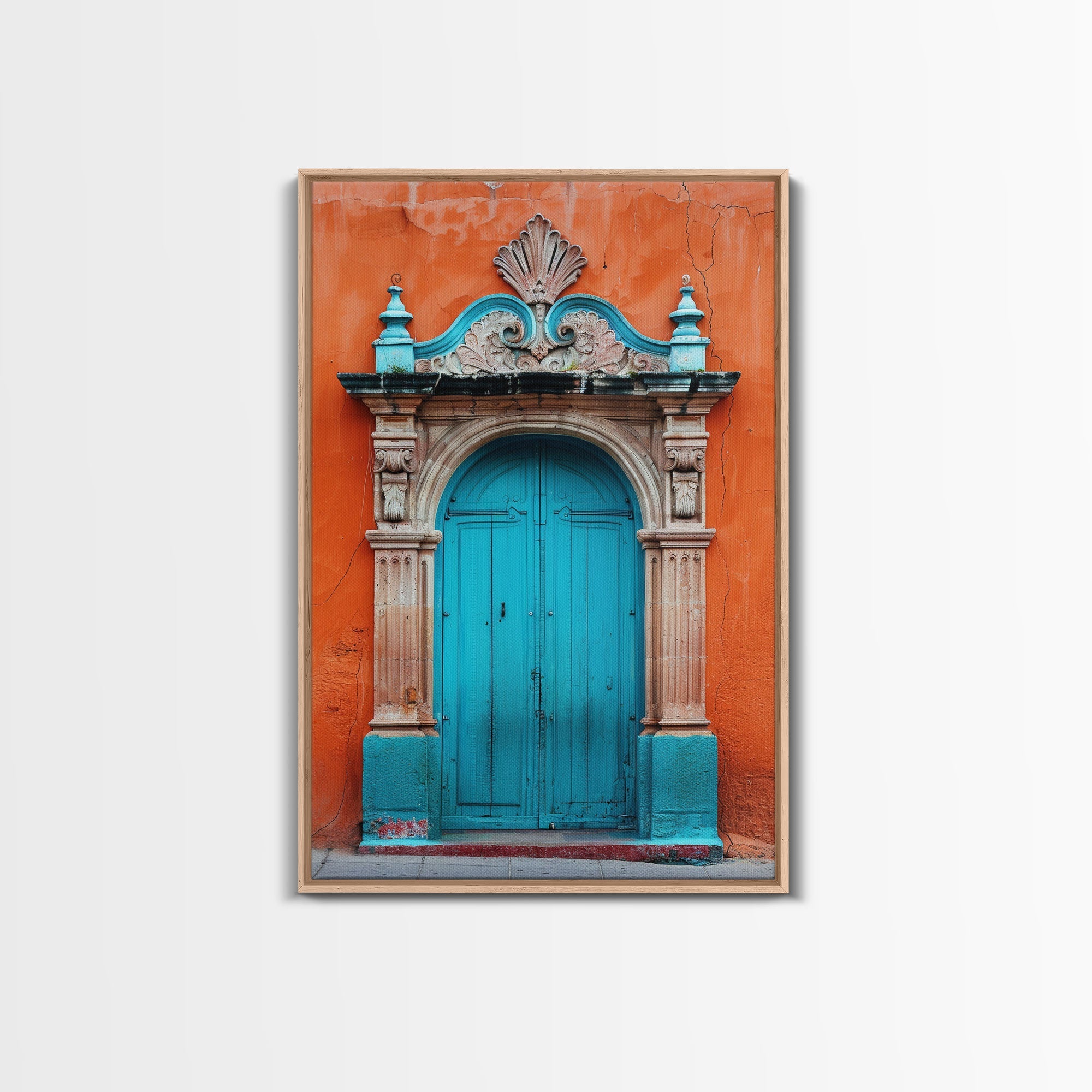 Change1 Mexican Wall Art, Colorful Mexican Door Architecture Painting Framed Canvas Print, Traditional Hacienda Architecture, Ready To Hang