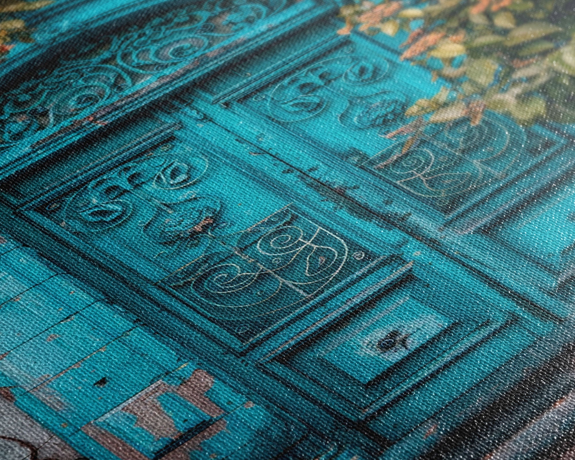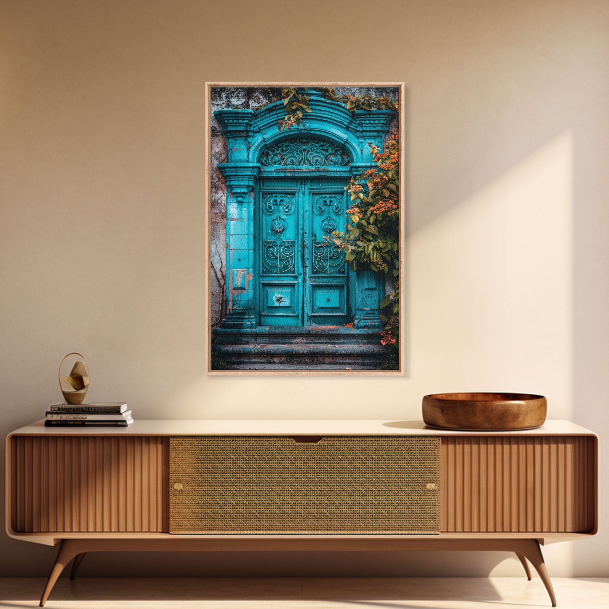 Change23 Mexican Wall Art, Colorful Mexican Door Architecture Painting Framed Canvas Print, Traditional Hacienda Architecture, Ready To Hang