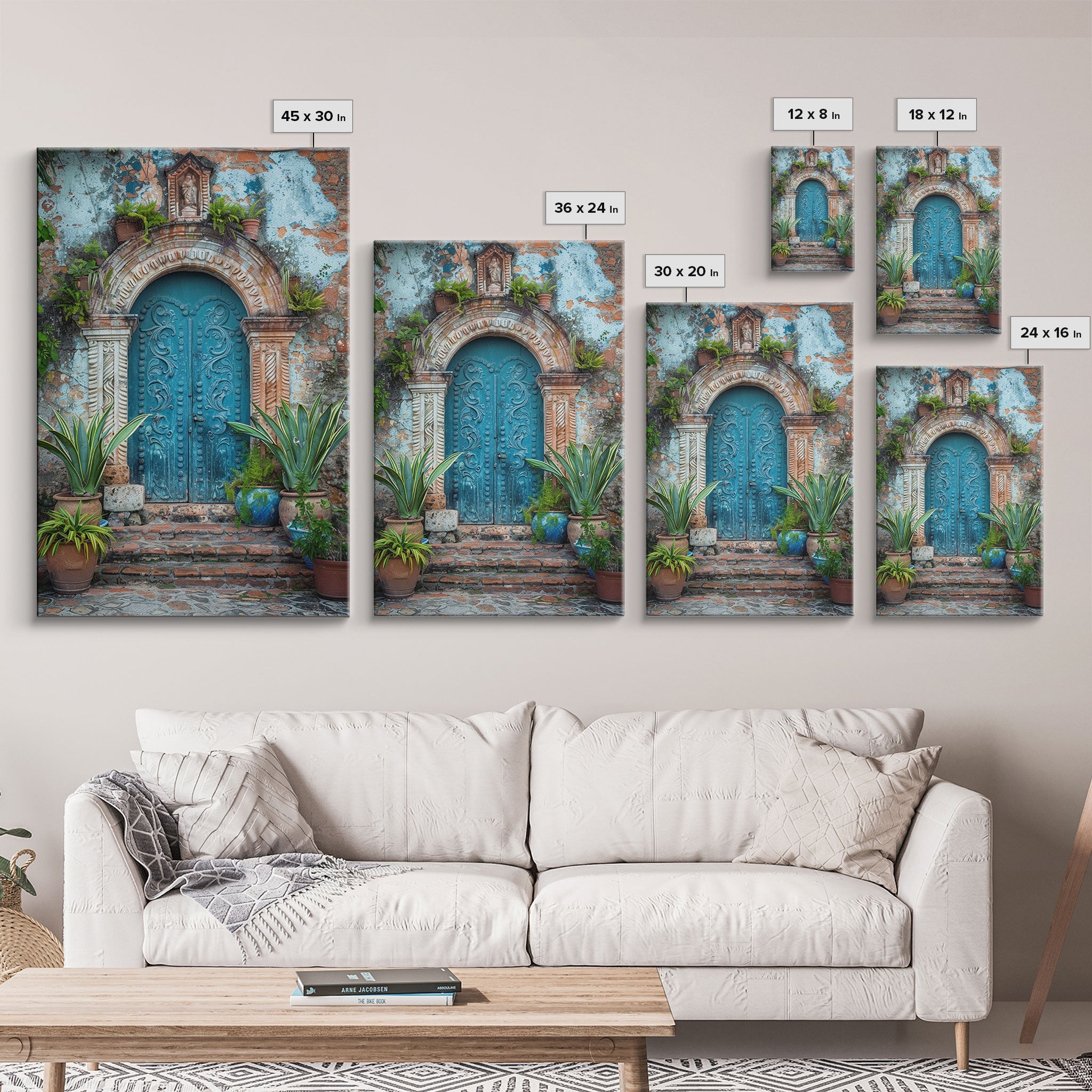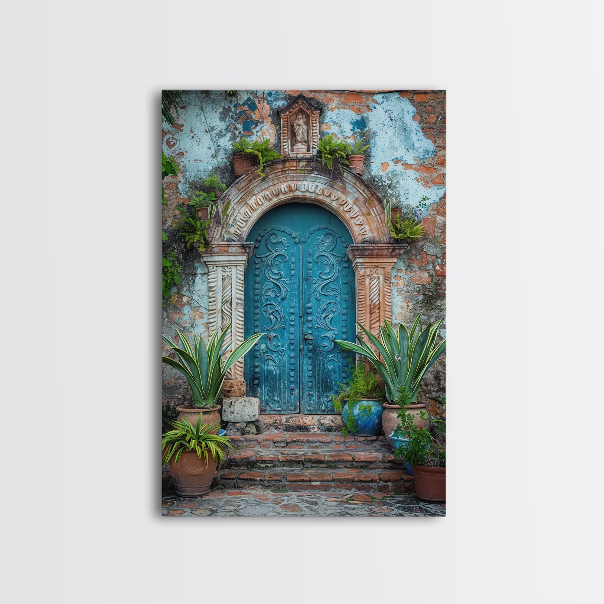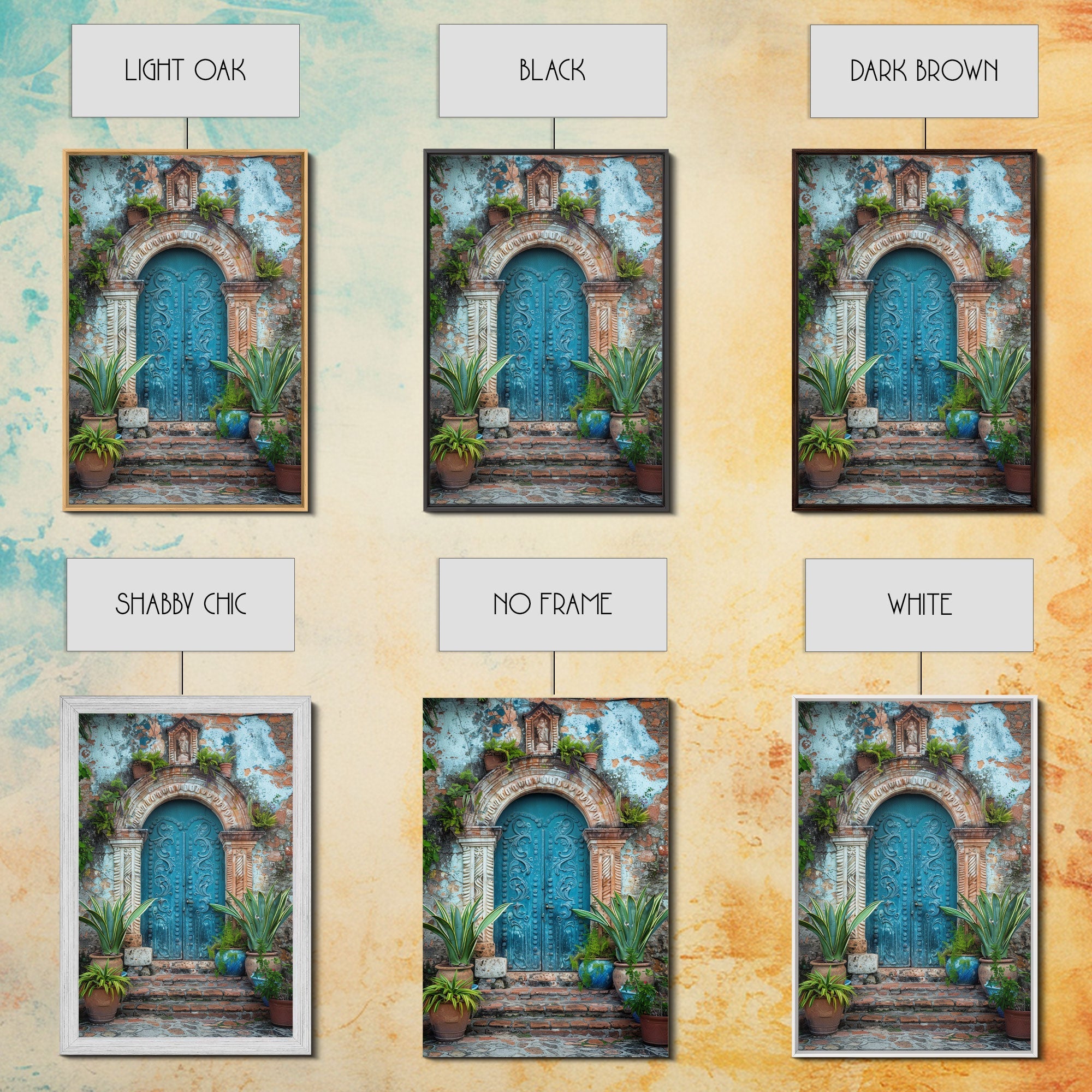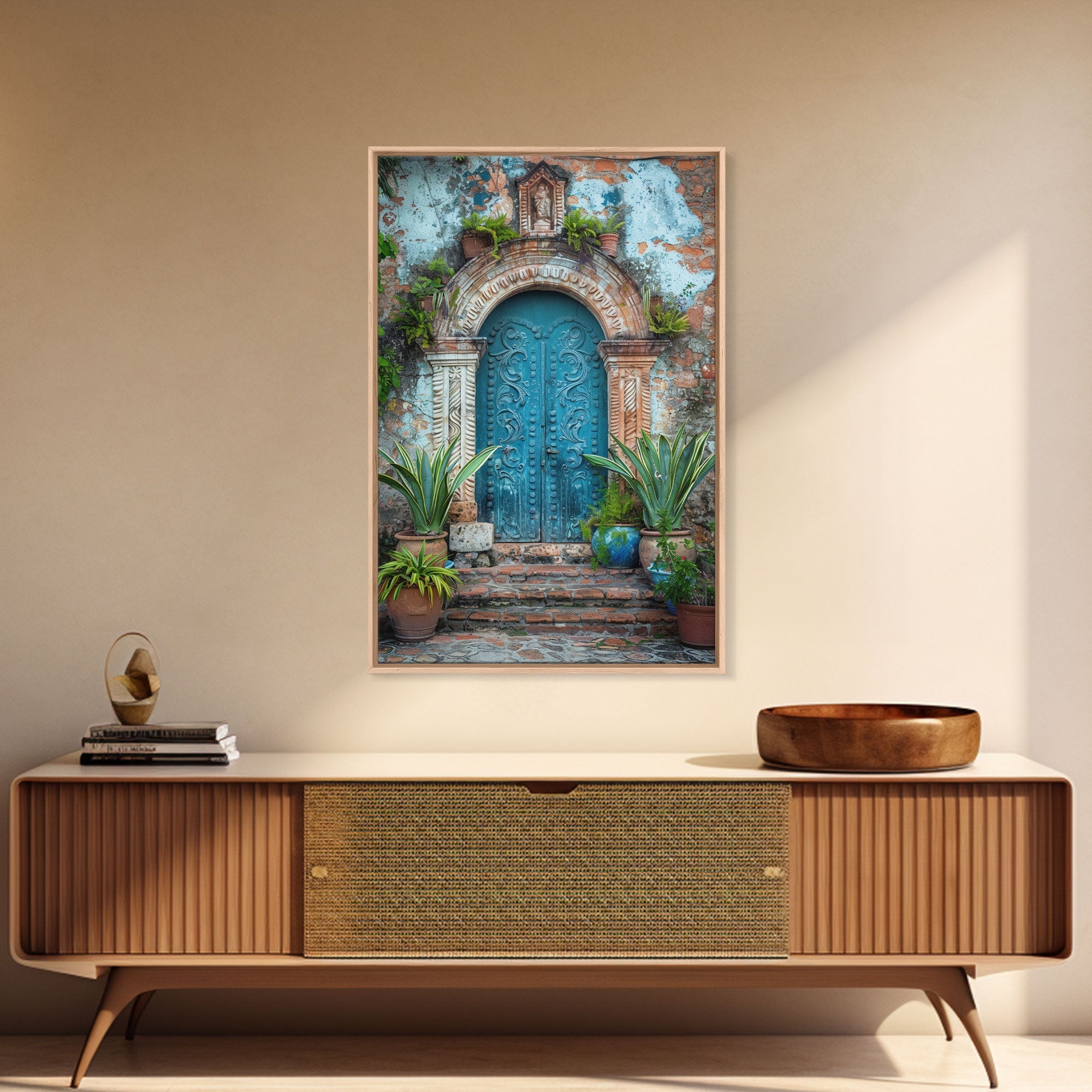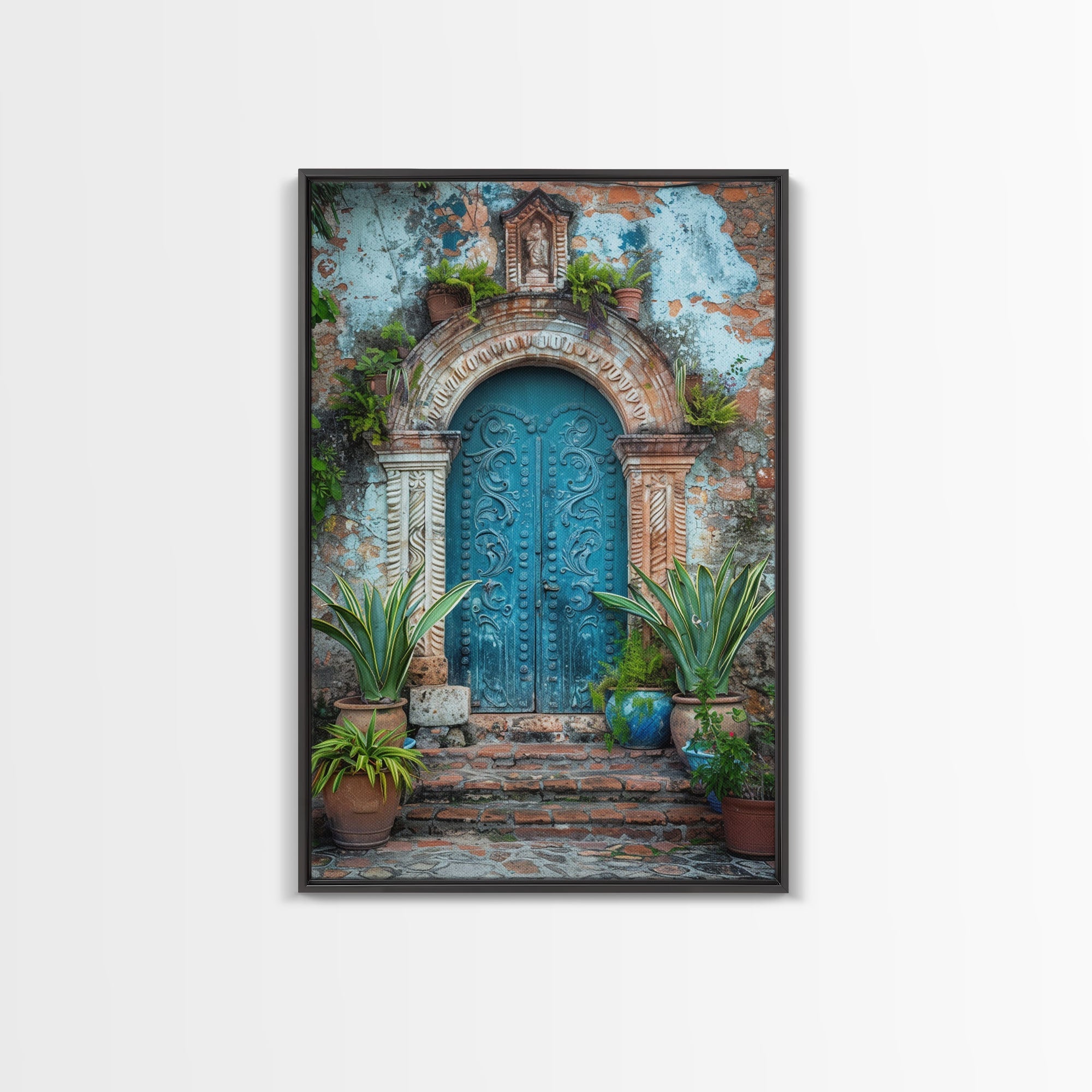 Change324 Mexican Wall Art, Framed Canvas Print, Old Town Mexico Architecture Wall Art, Framed Art