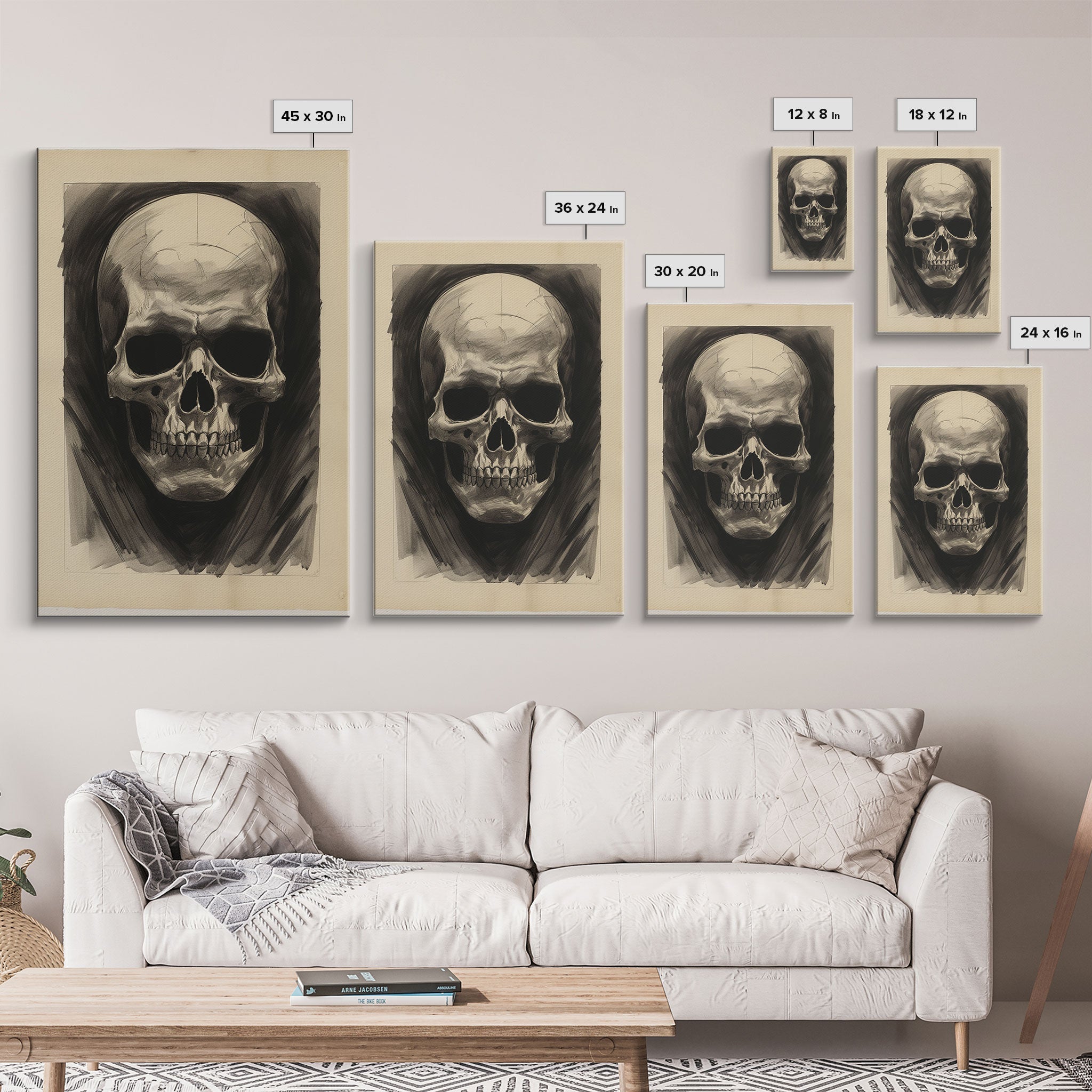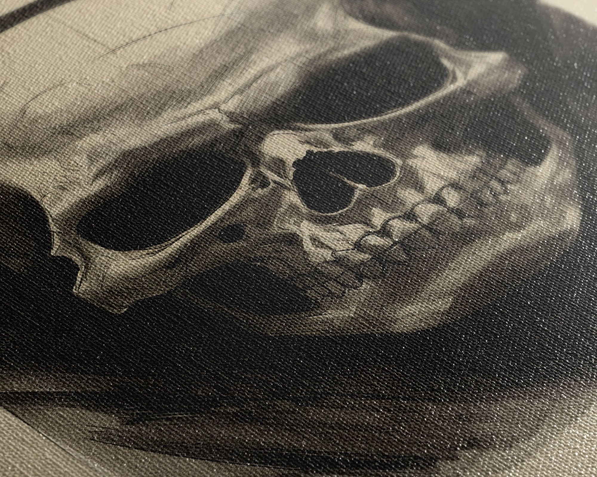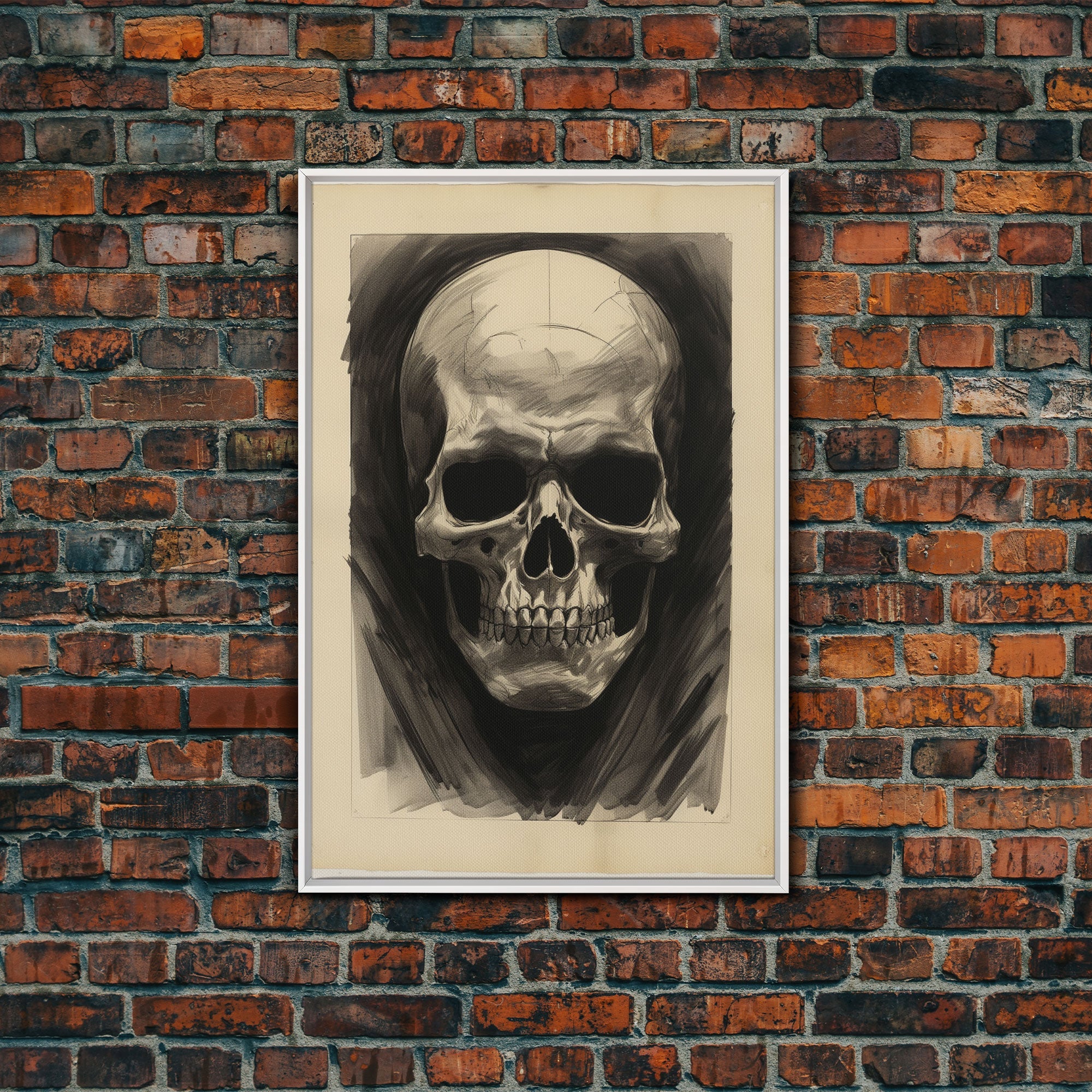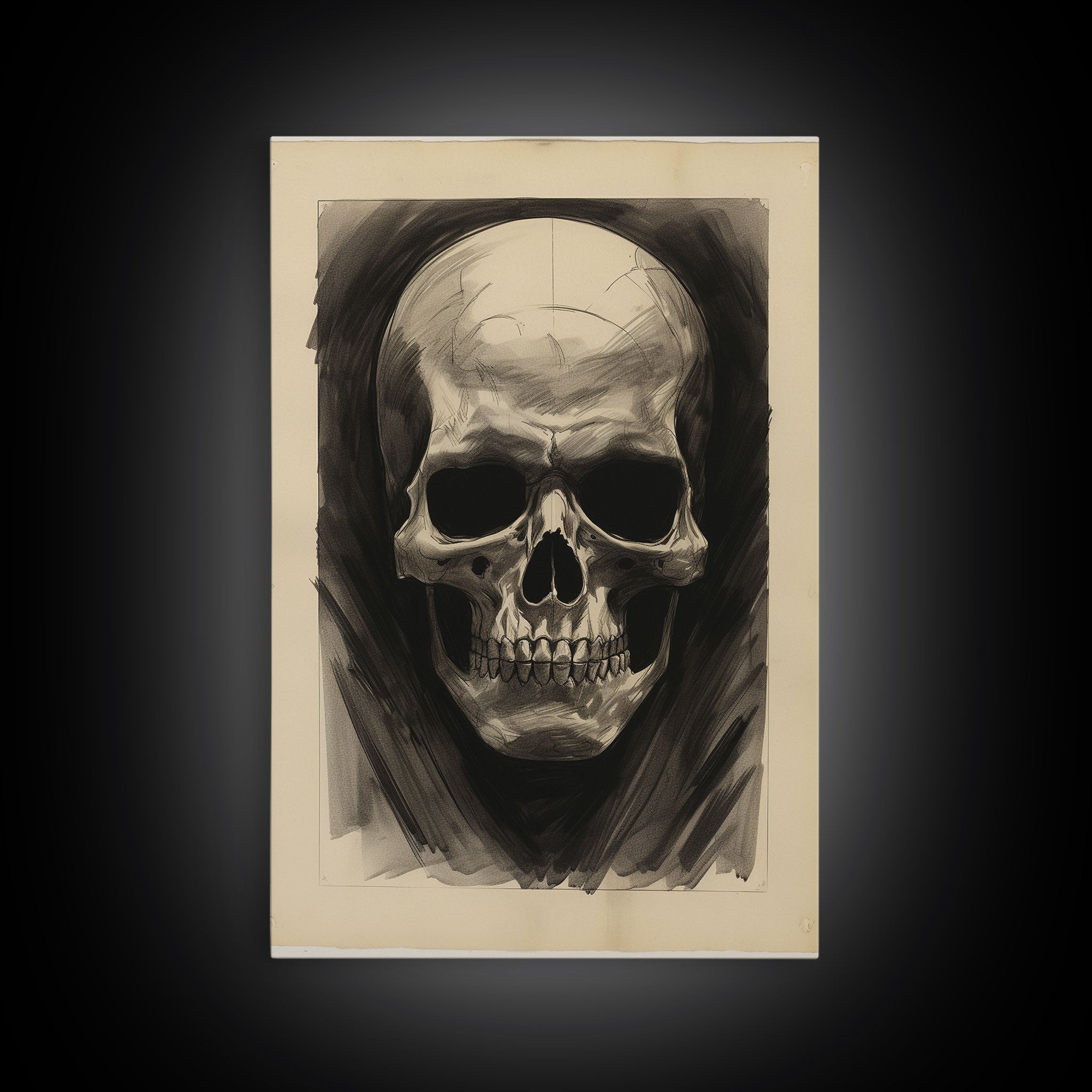 Charcoal Drawing, Human Skull, Gothic Art Print, Spooky Decor, Canvas Print, Wall Art, Vertical Art, Gaming Wall Decor, Office Wall Decor