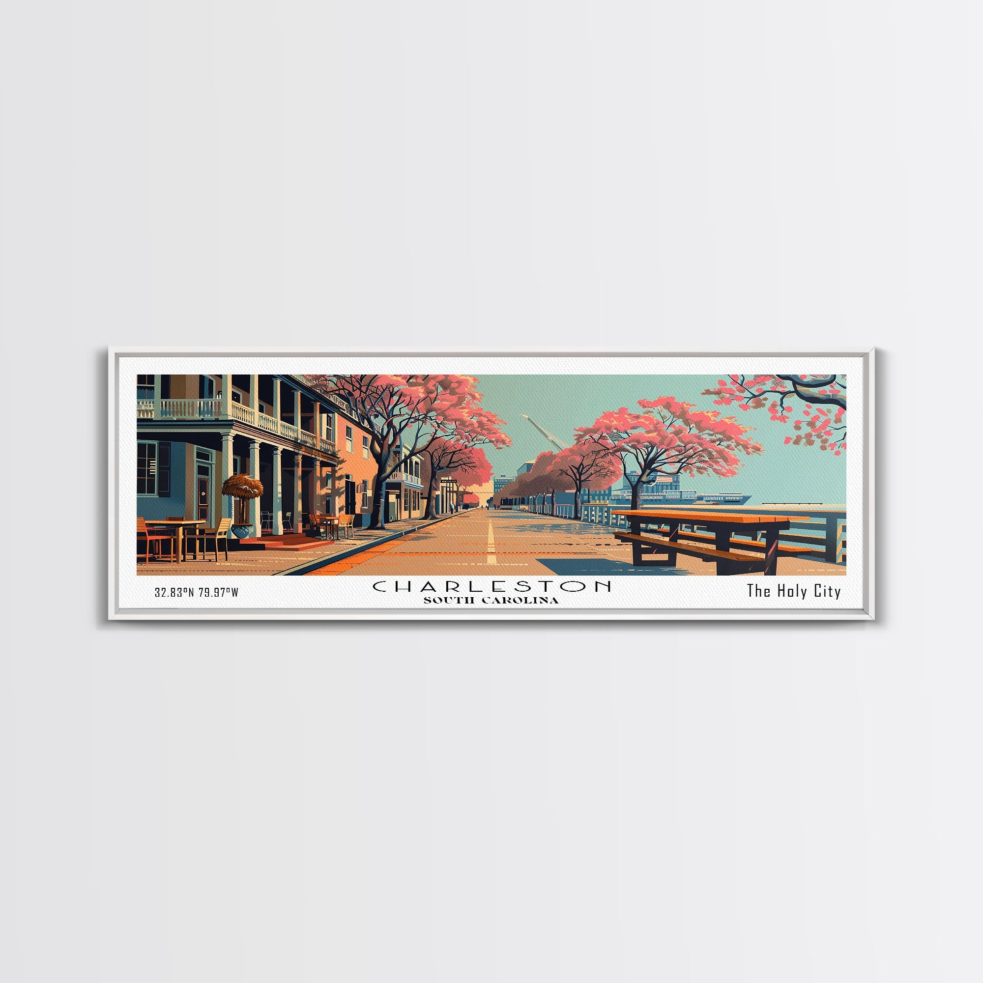 Charleston South Carolina Panoramic Painting, Framed Canvas Print, Mid Century Modern Wall Art, Retro Pop Art Travel Poster, Home Decor, City Art