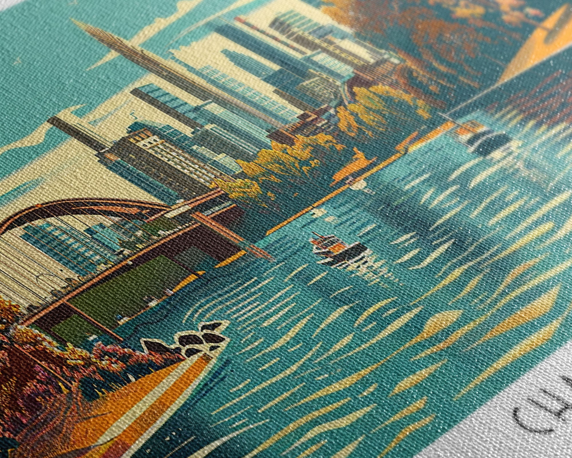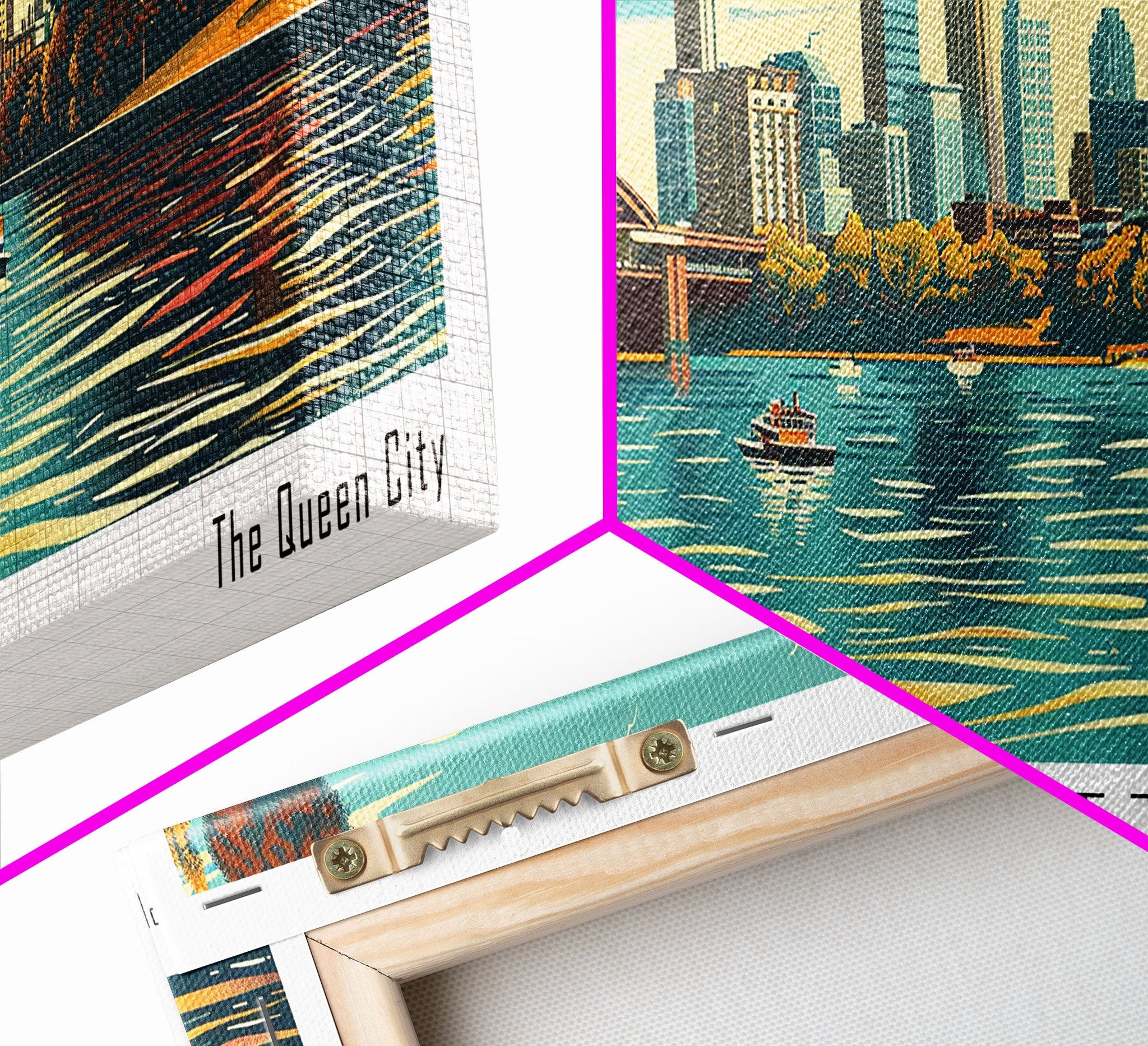 Charlotte North Carolina Panoramic Painting, Framed Canvas Print, Mid Century Modern Wall Art, Retro Pop Art Travel Poster, Living Room Decor, City Art