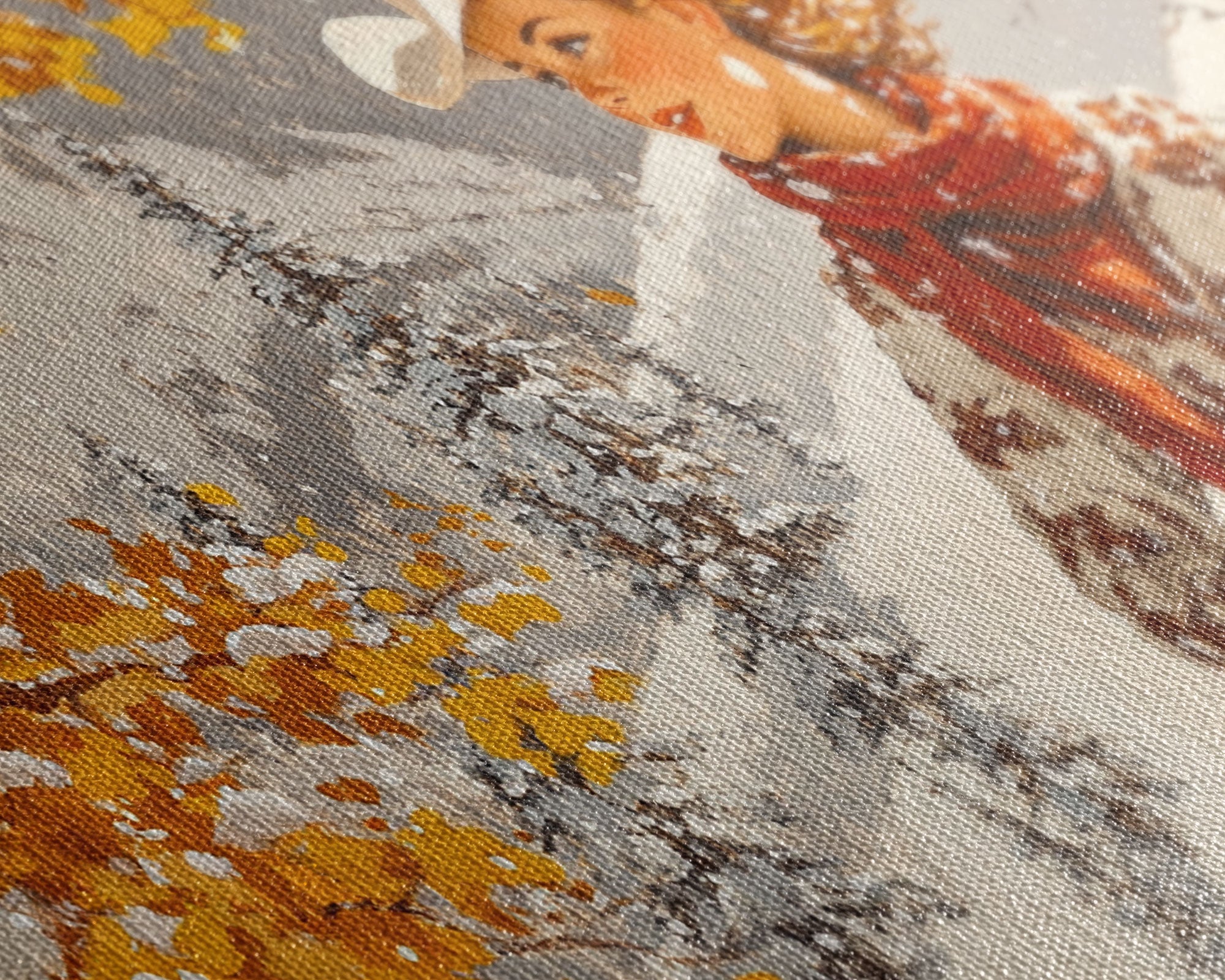 Charming Framed Canvas Print of a Cowgirl in Autumn Leaves, Perfect Fall Wall Decor and Gift Idea for Fans of Western Art Rustic Home Decor