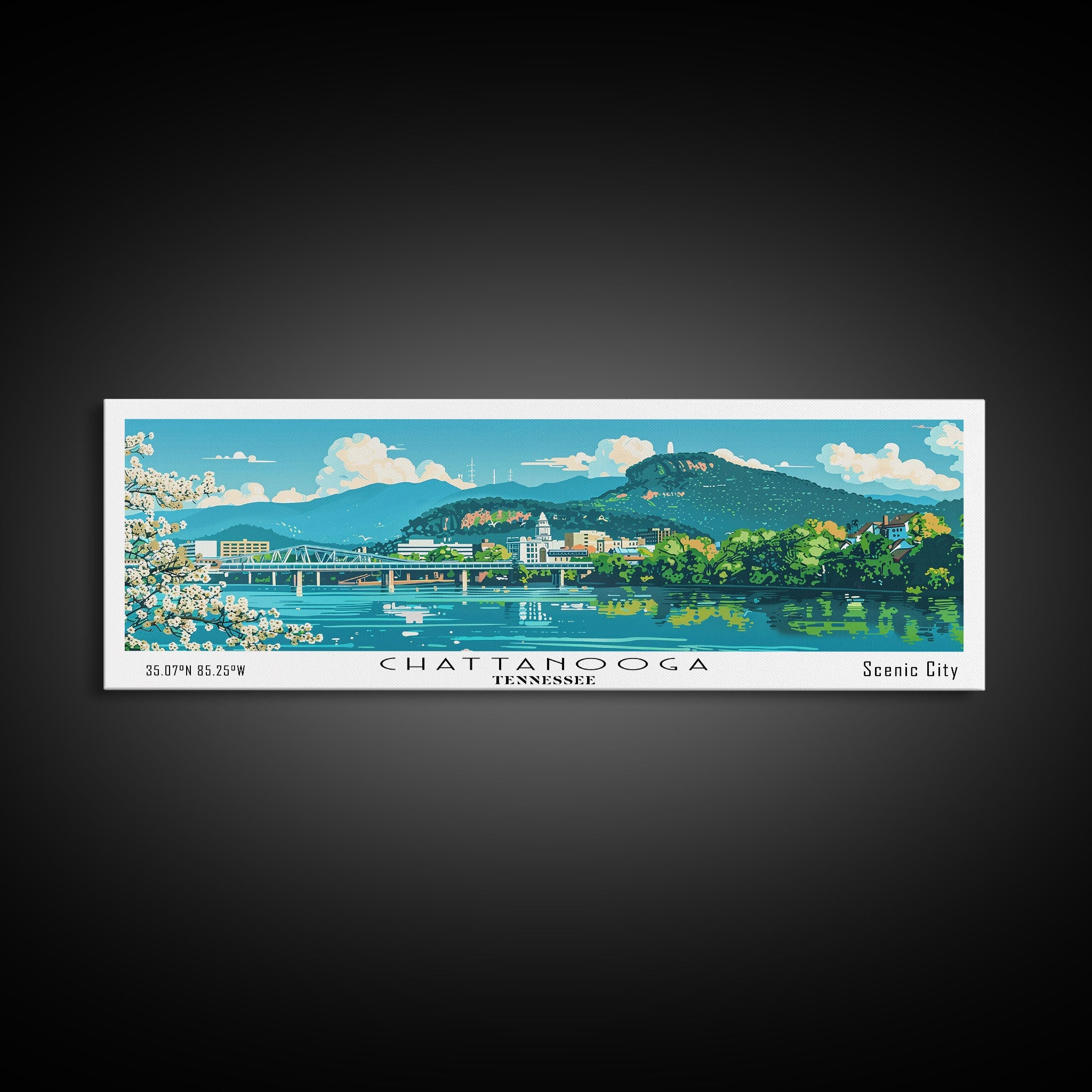Chattanooga Tennessee Panoramic Painting, Mid Century Modern Framed Canvas Print, Retro Pop Art Travel Poster, Home Decor, City Print