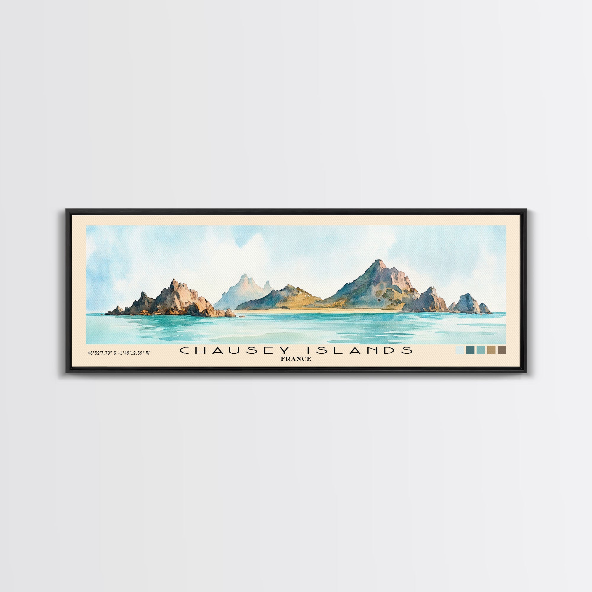 Chausey Islands, France Watercolor Beach Print, Vacation Gift, France Wall Art, Framed Canvas Print, Framed Beach Painting