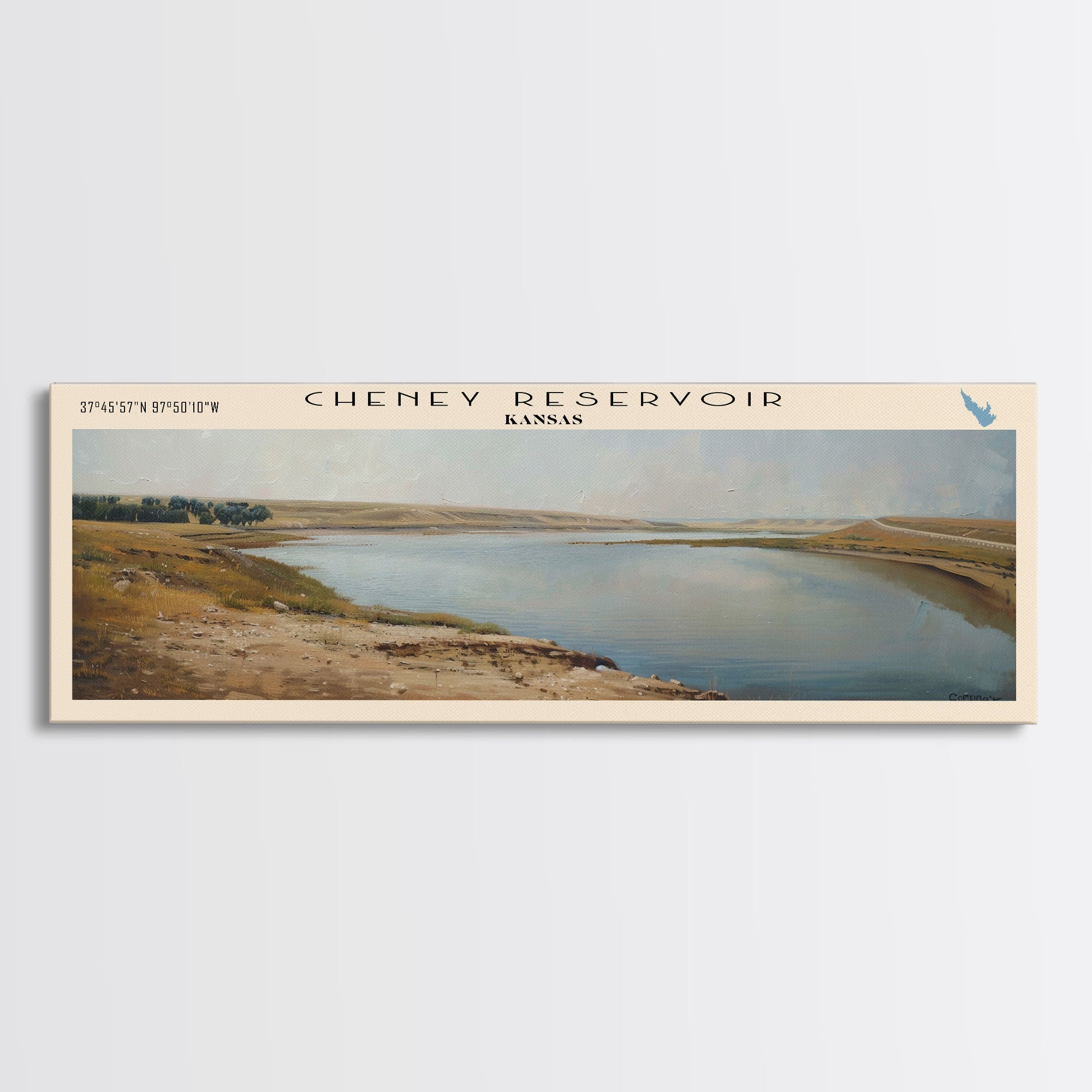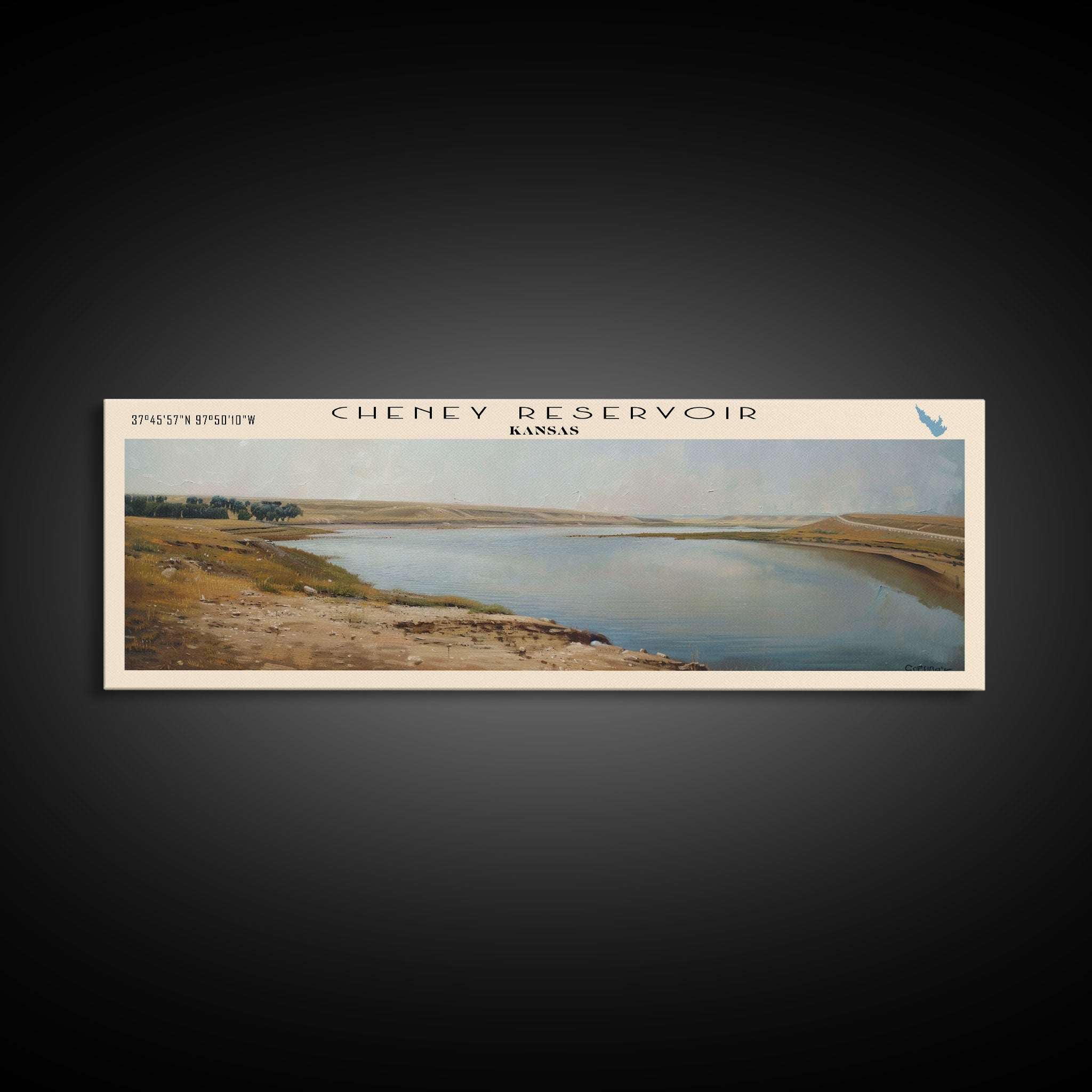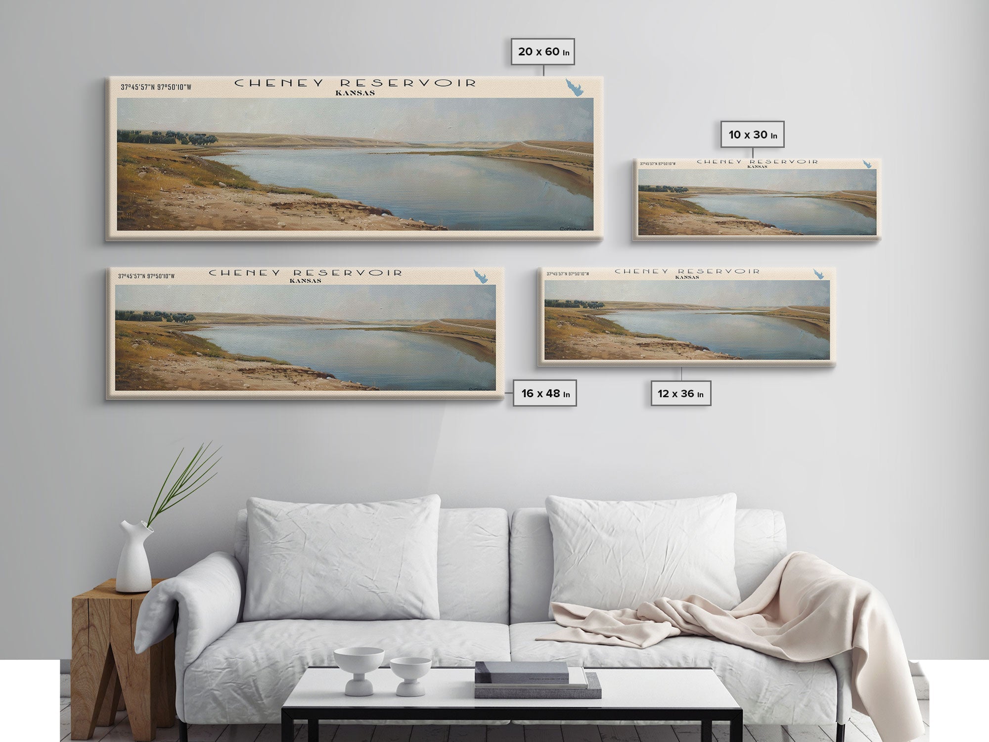 Cheney Reservoir Kansas Framed Canvas Print, Panoramic Lake House Decor, Wide Wall Art, Travel Poster, Rustic Lake Painting, Home Decor