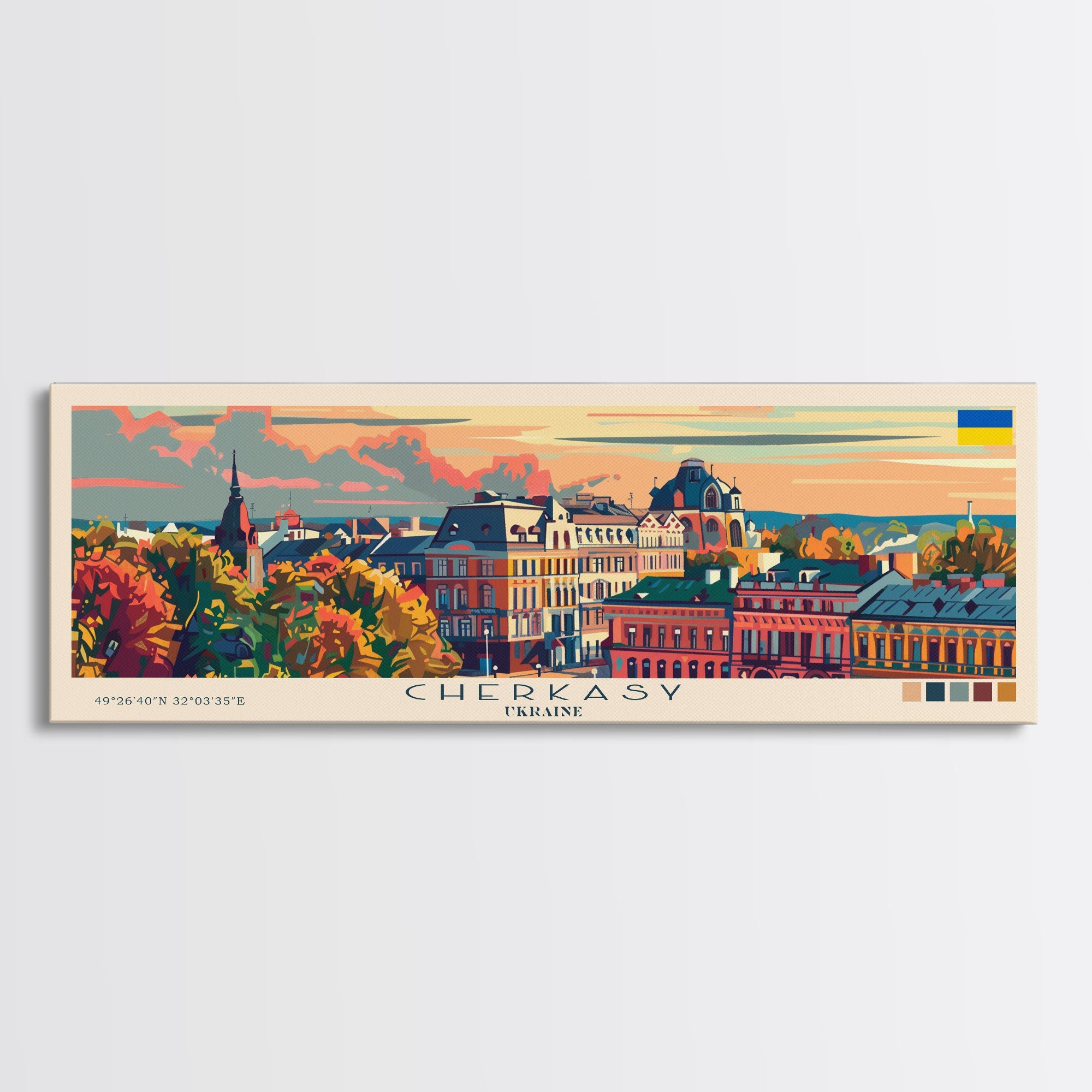 Cherkasy Ukraine Travel Art, City Art, Framed Canvas Print or Metal Wall Art, Europe Travel Poster, Panoramic Wall Art, Extra Wide Wall Art